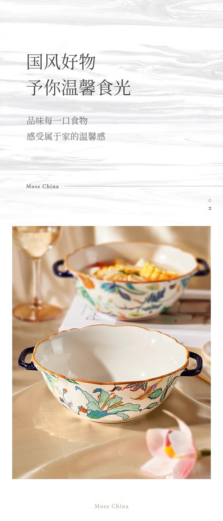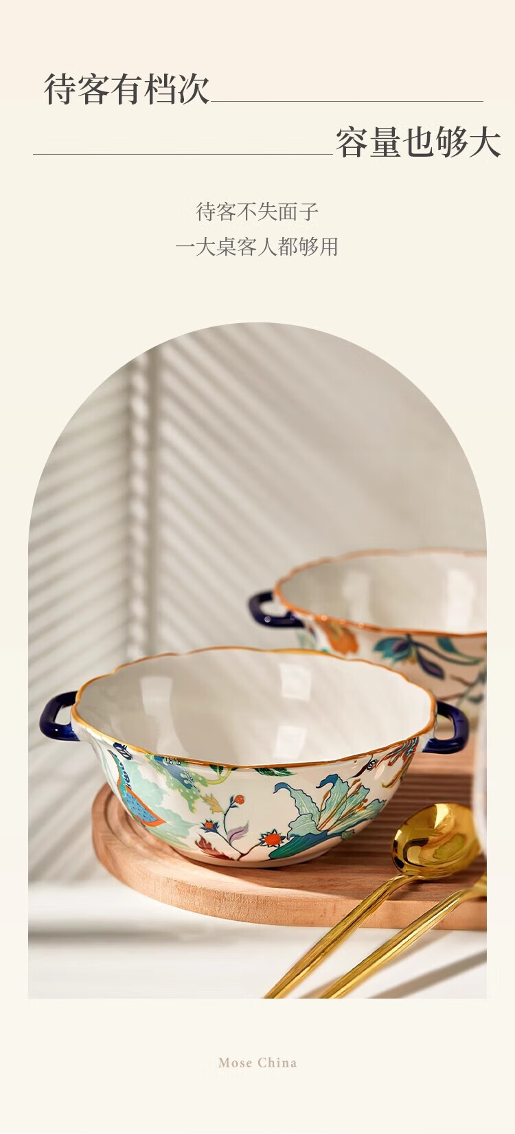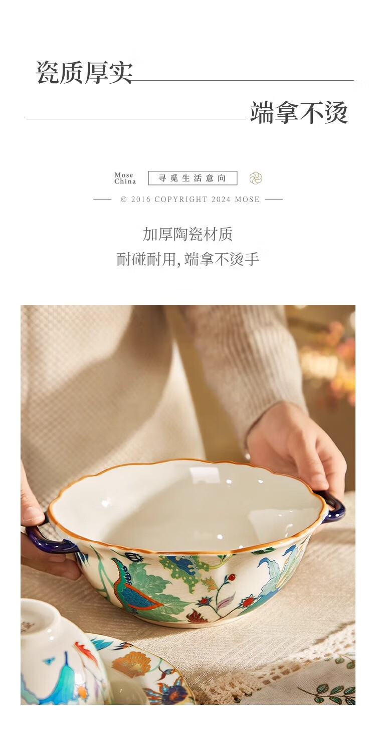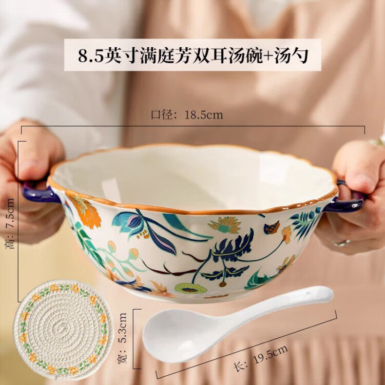 Black ceramic double-ear soup bowl household large rice bowl high-looking large bowl noodle soup bowl snail rice bowl original household soup rice bowl