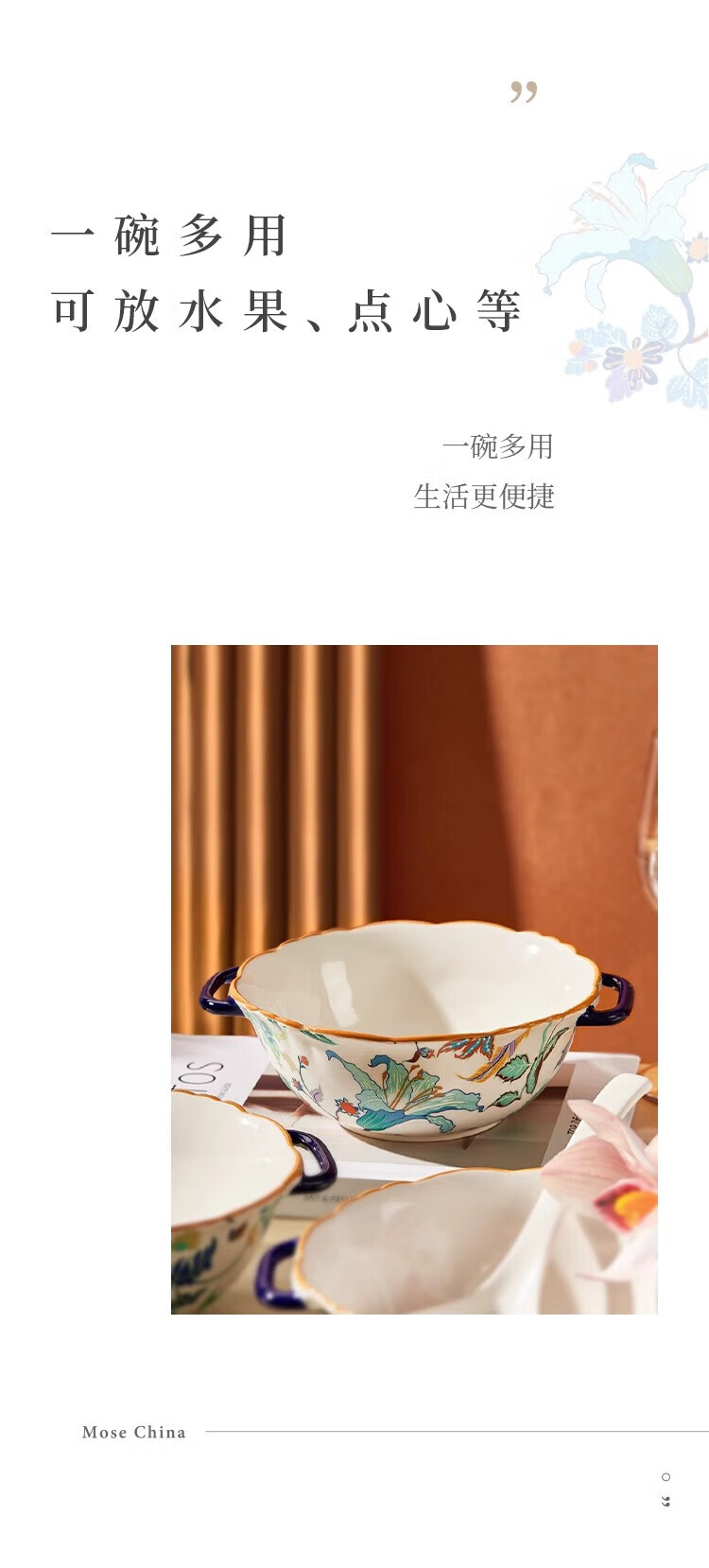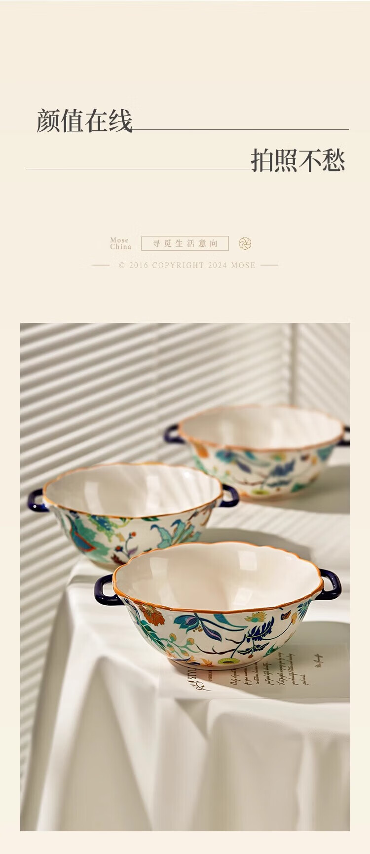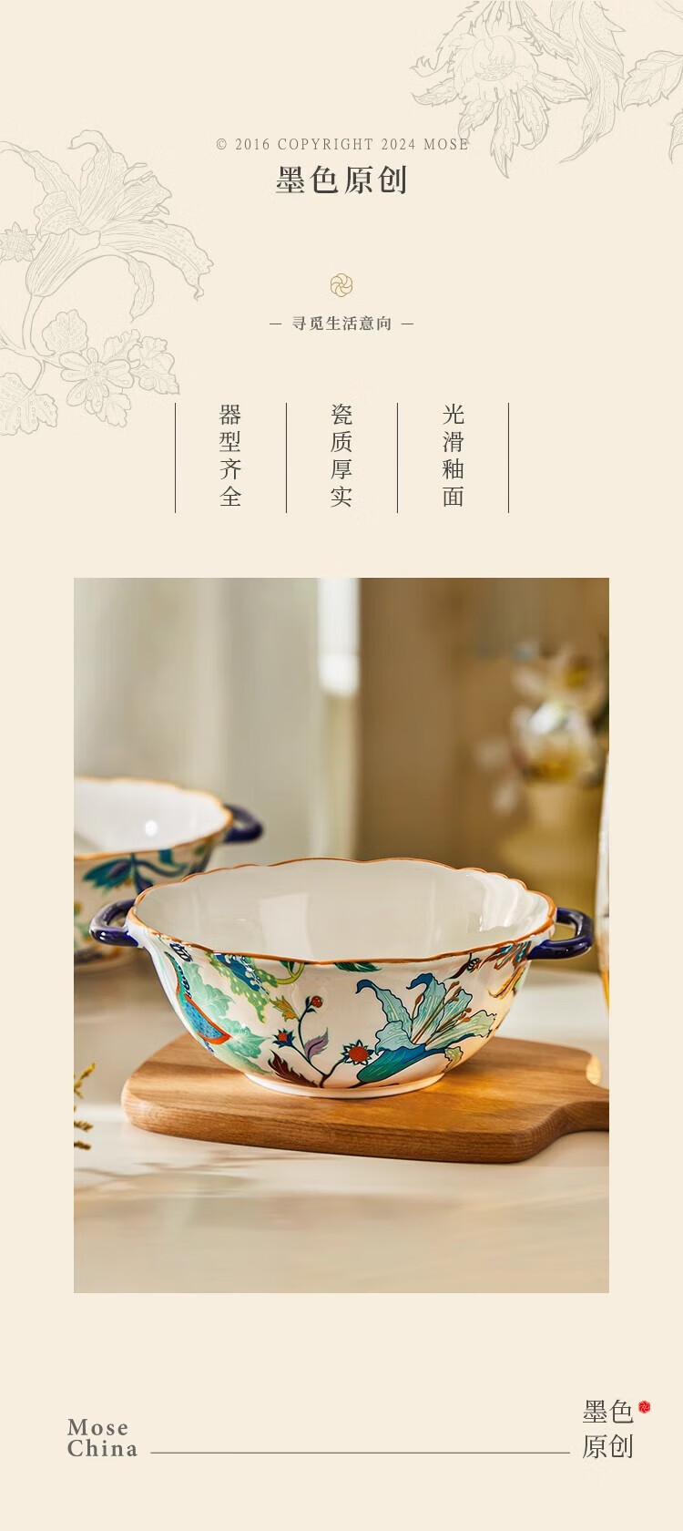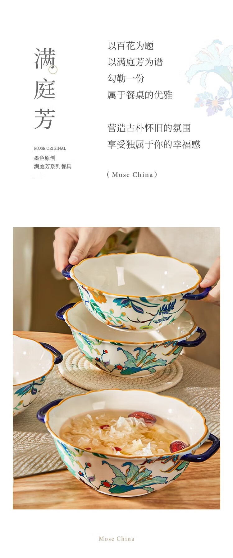 Black ceramic double-ear soup bowl household large rice bowl high-looking large bowl noodle soup bowl snail rice bowl original household soup rice bowl