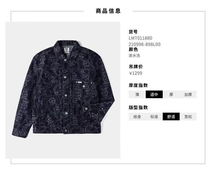 Lee101J Western Denim Jacket Shopping Mall Style 26 Spring New Comfort Edition 101+ Full Print Washable Men Washable S