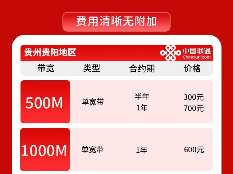 China Unicom (UNICOM) Guizhou Broadband Unicom Broadband 500M Broadband Application Broadband Reservation