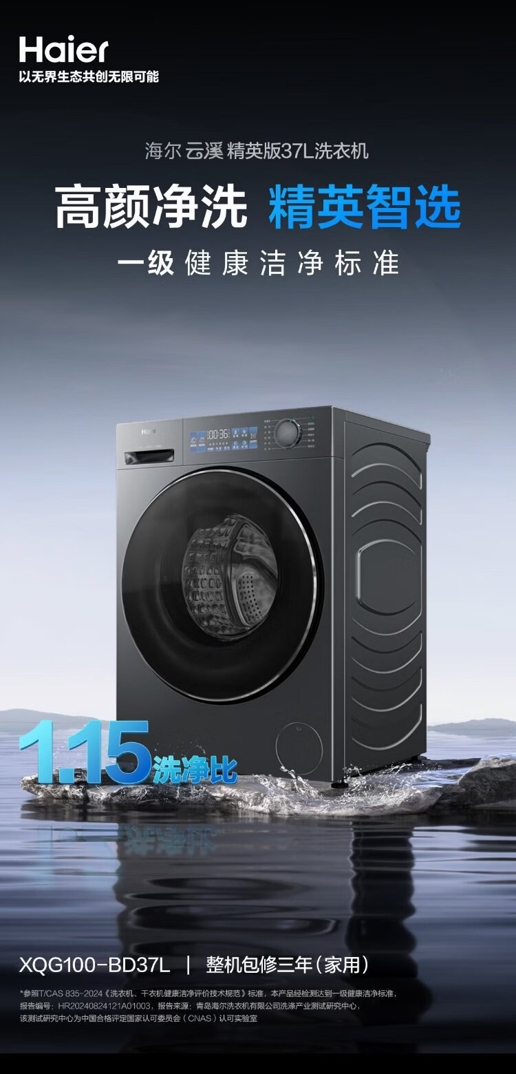 Haier Yunxi Elite Edition drum washing machine fully automatic 10kg for lazy people at home direct drive living water essence washing home appliance subsidy trade-in XQG100-BD37L