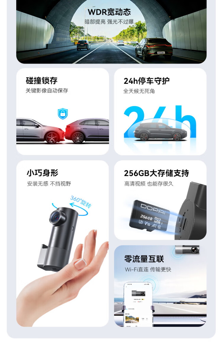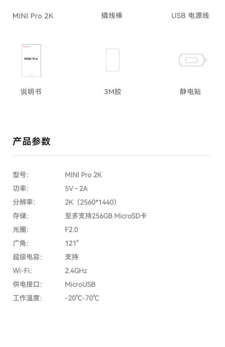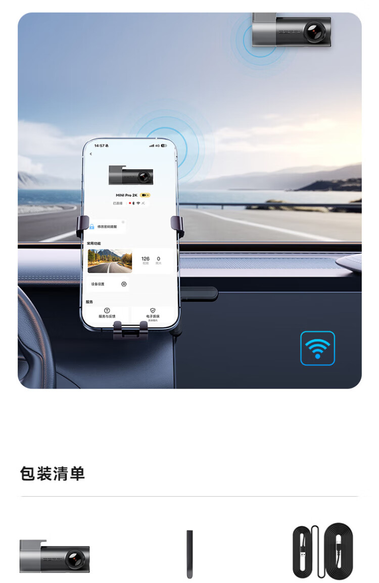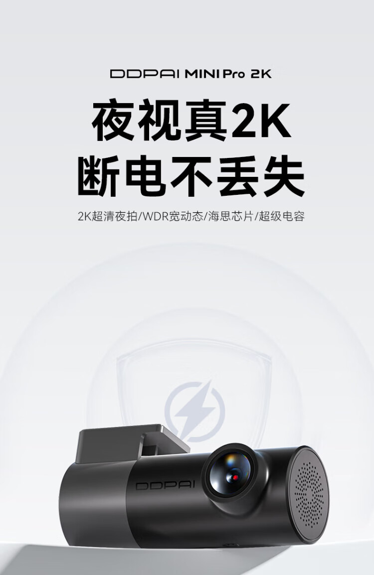 Dandaipai driving recorder MINIPro 2K version, high-definition night vision, no loss when power is off + 64G card package-car charging version