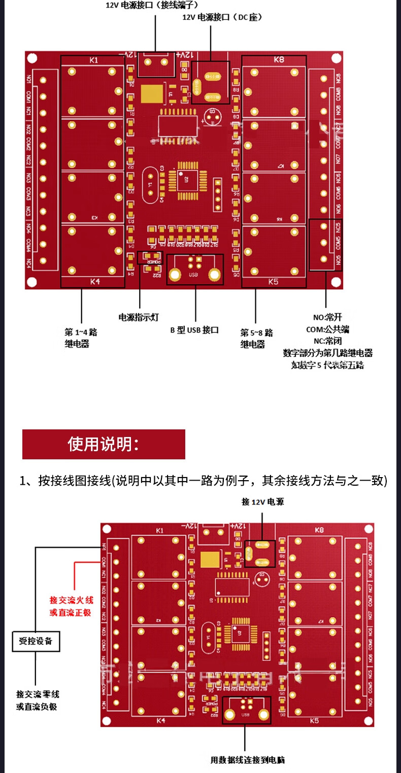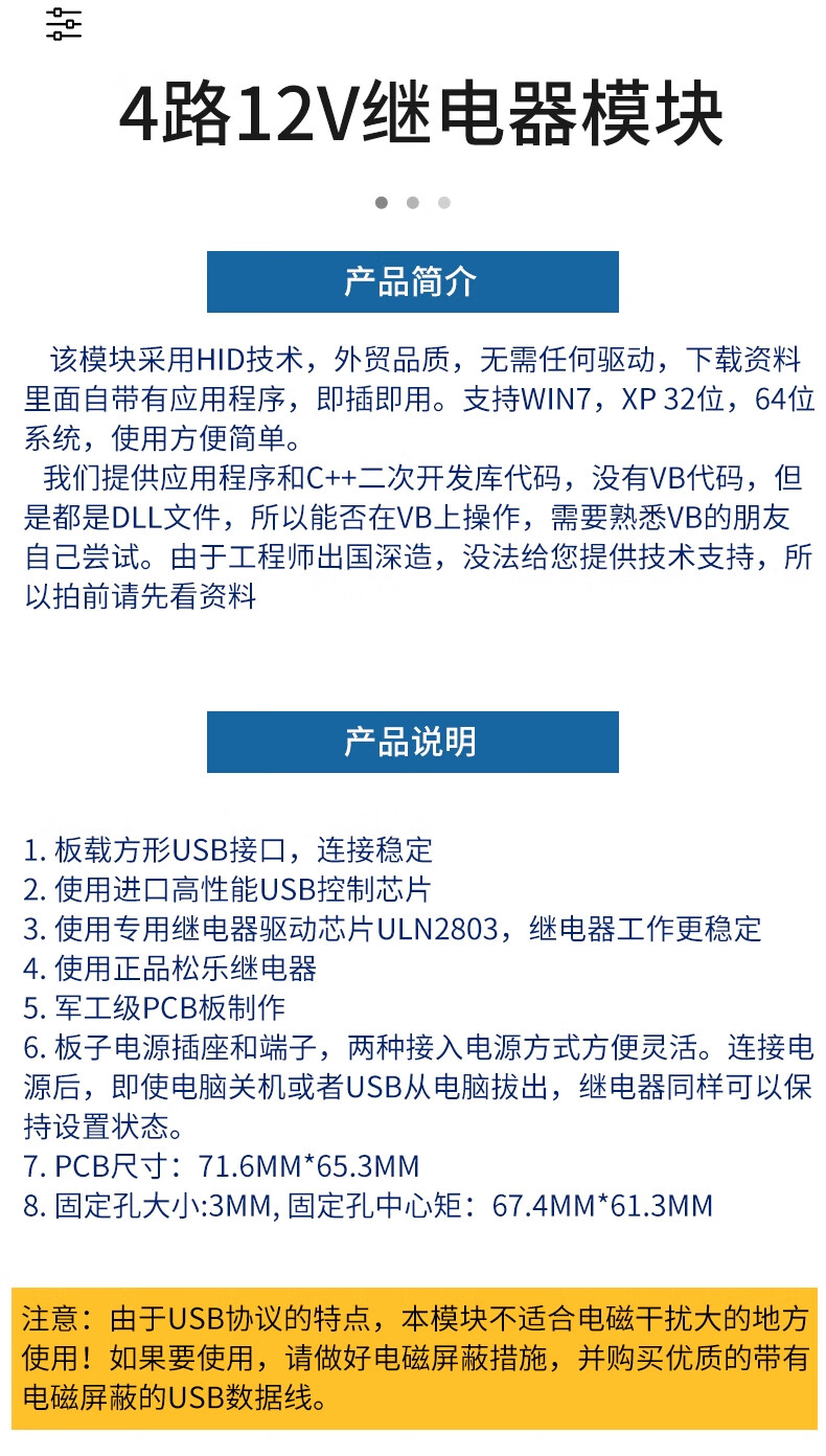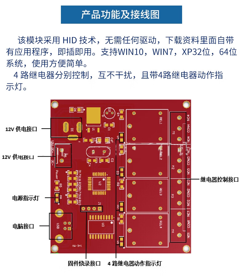 ZAVE computer USB control switch driver-free relay module 4-way 12V relay module