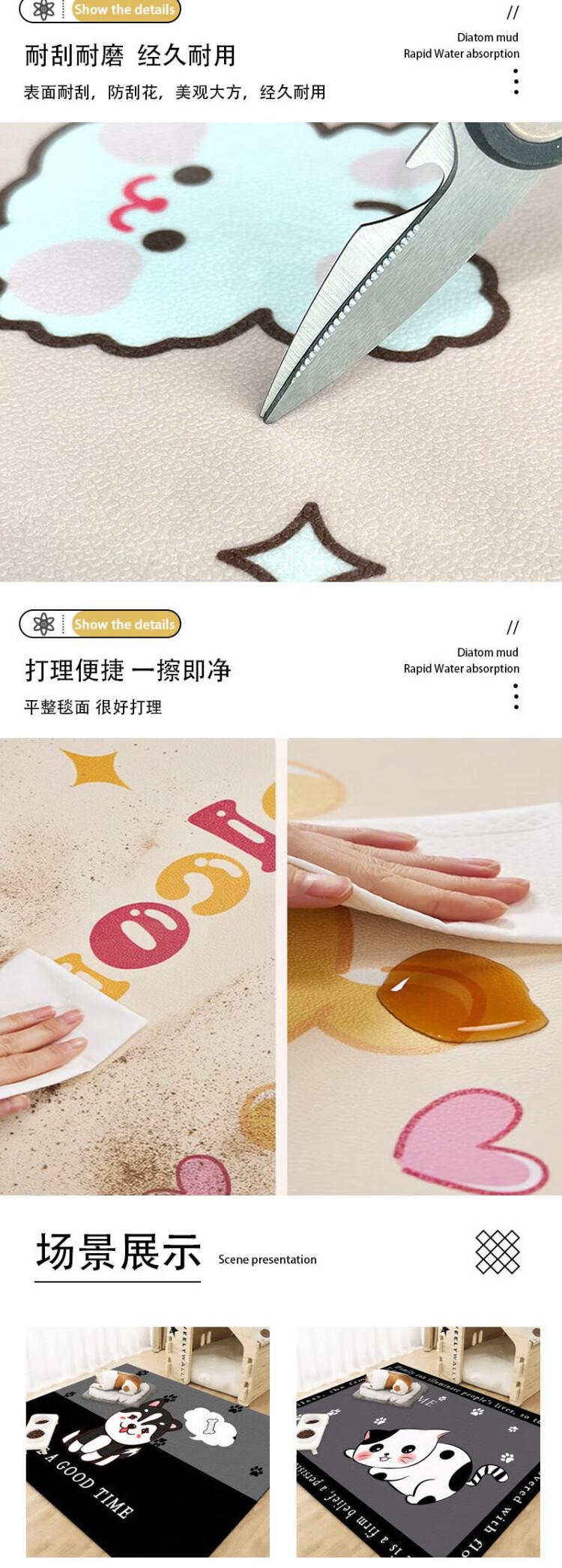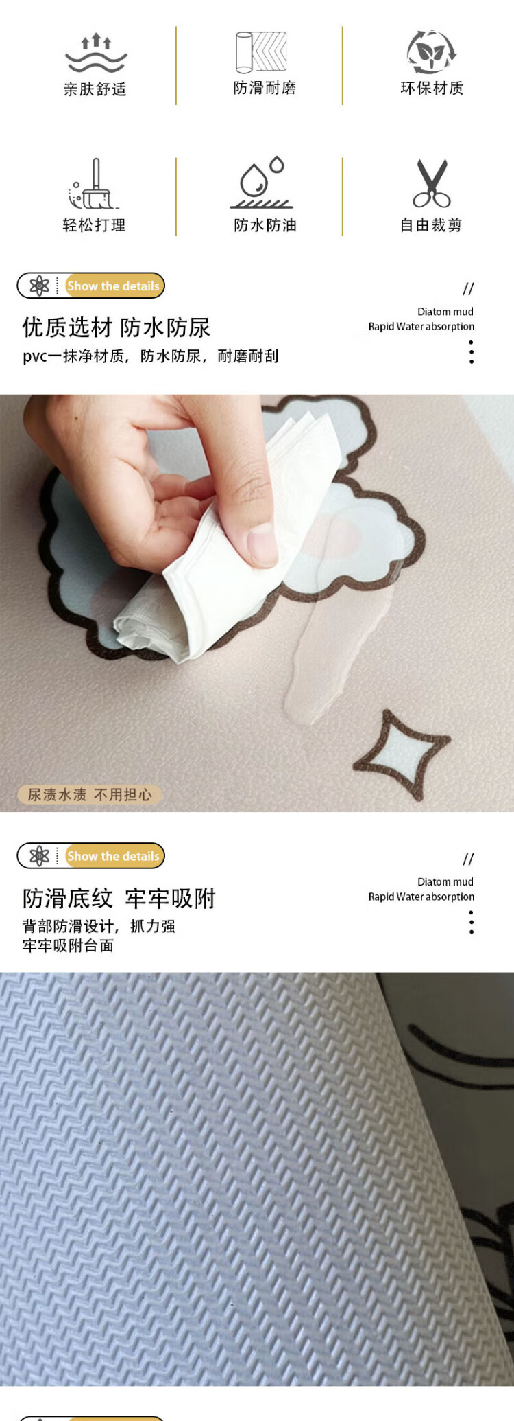 Ono Seven Days pet floor mat cat and dog meal mat pvc dog cage mat waterproof and urine-proof dog wash-free fence carpet urine mat anti-slip