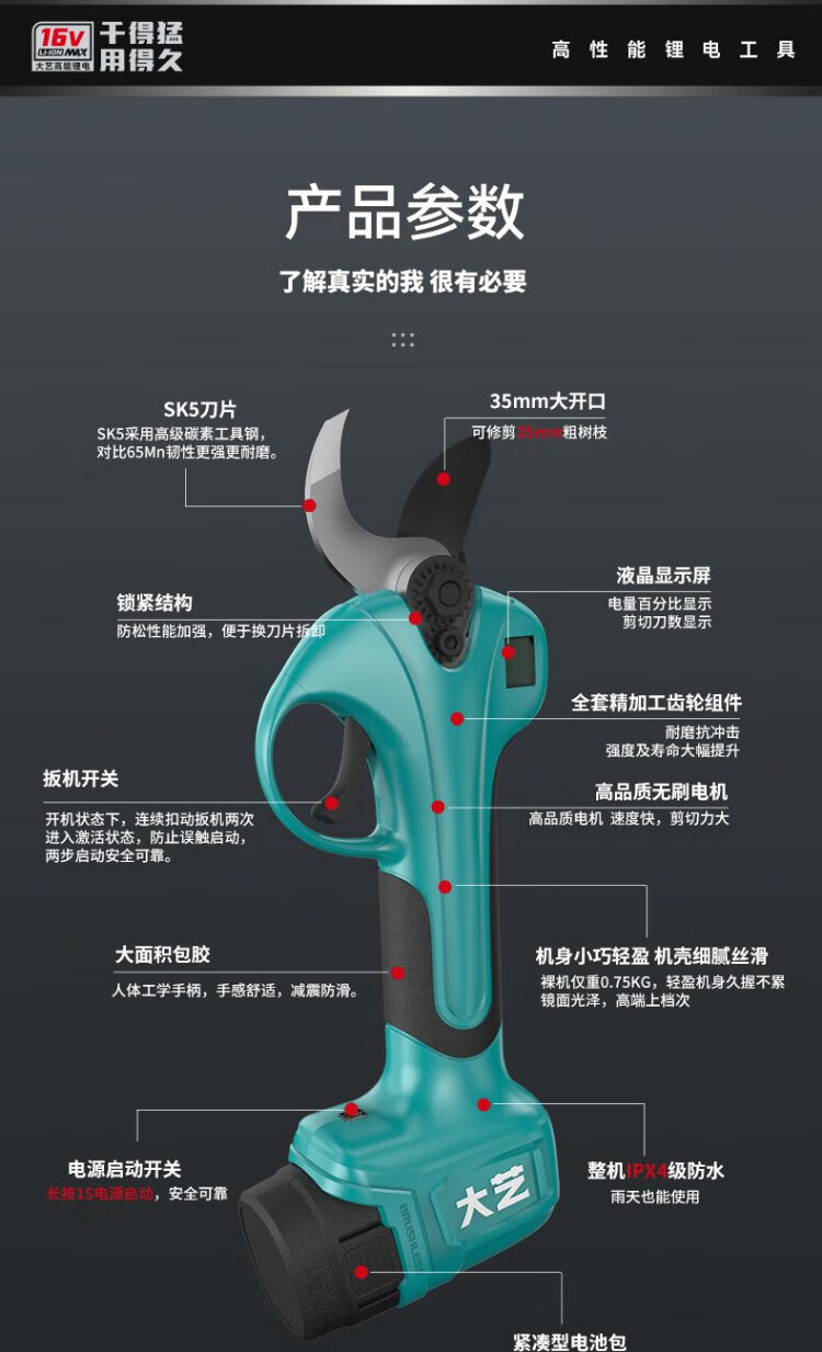 Dayi electric pruning shears hand-held fruit branch shears garden home outdoor portable pruning rechargeable scissors P16-35-1