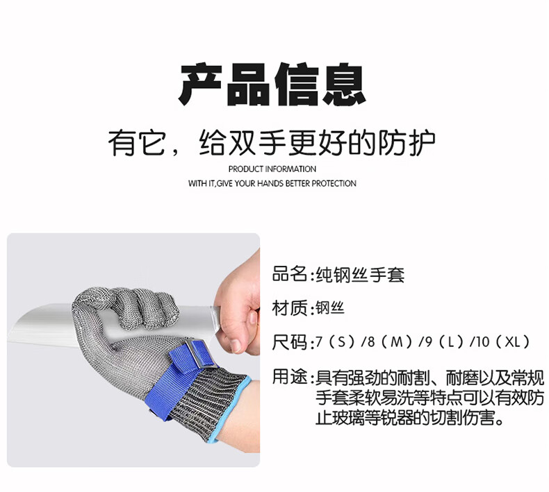 Ustin steel wire anti-cut gloves, labor protection gloves anti-cut, level 9 anti-cut meat kitchen L single pack