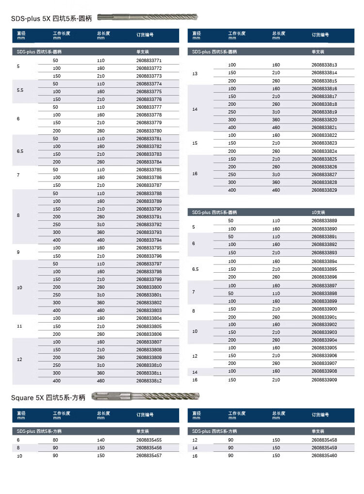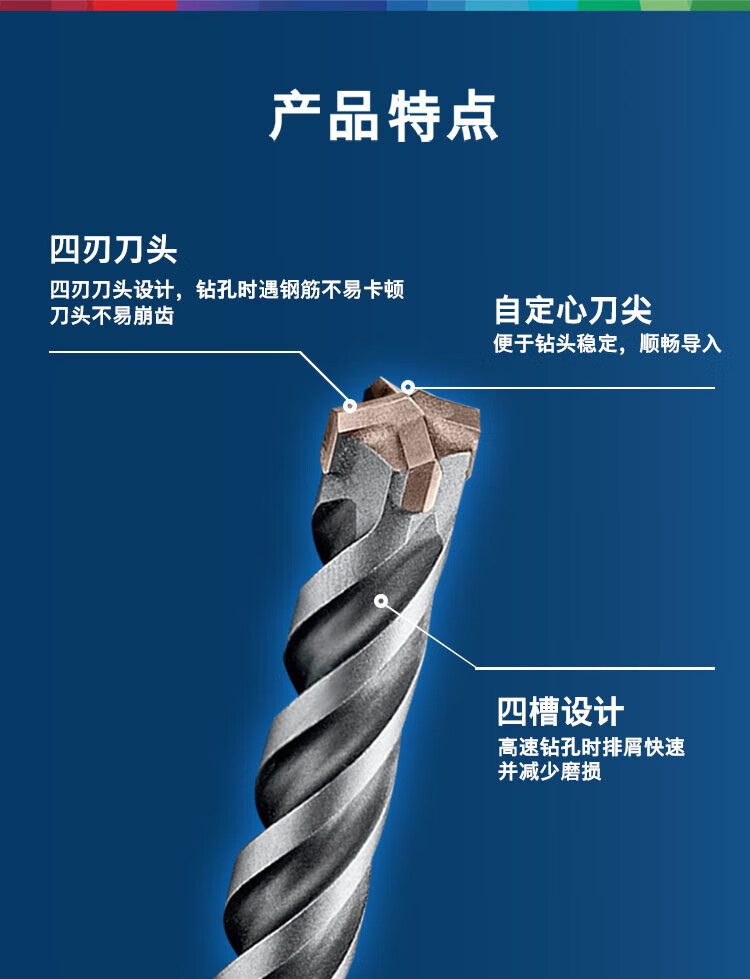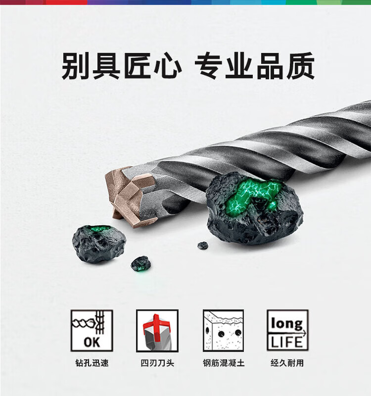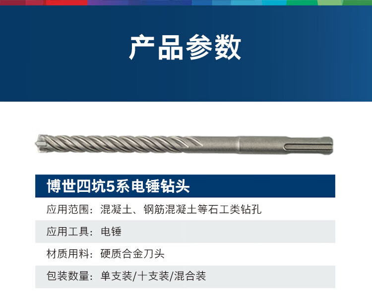 Bosch (BOSCH) electric hammer drill bit four pits 5 series round handle two pits two slots concrete masonry drill bit set of 14