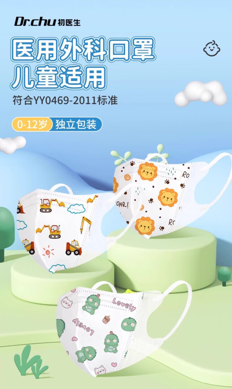 CHUYISHENG medical surgical masks are suitable for children's 3D three-dimensional protection and dust-proof independent packaging of 30 pieces for older children and girls