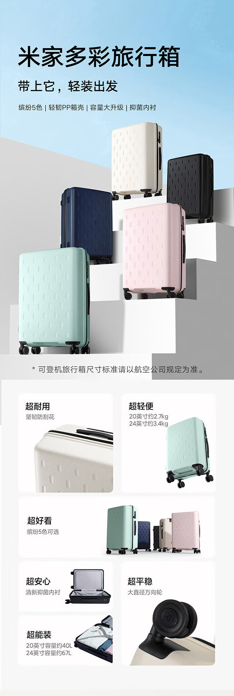 Mijia Xiaomi suitcase 20-inch boarding universal wheel suitcase men's and women's password box blue comes with aromatherapy hanging piece