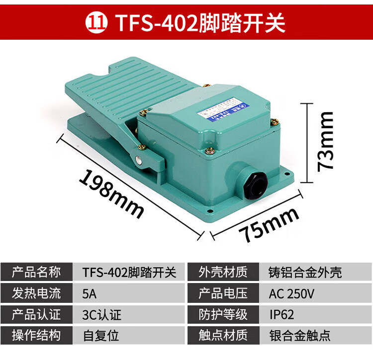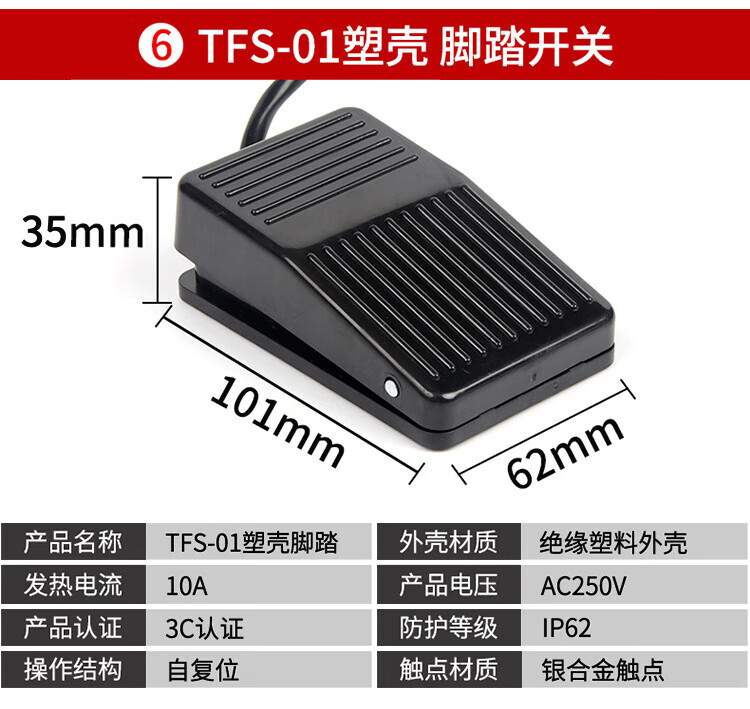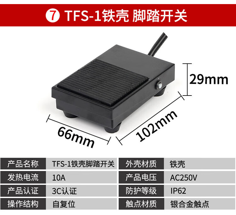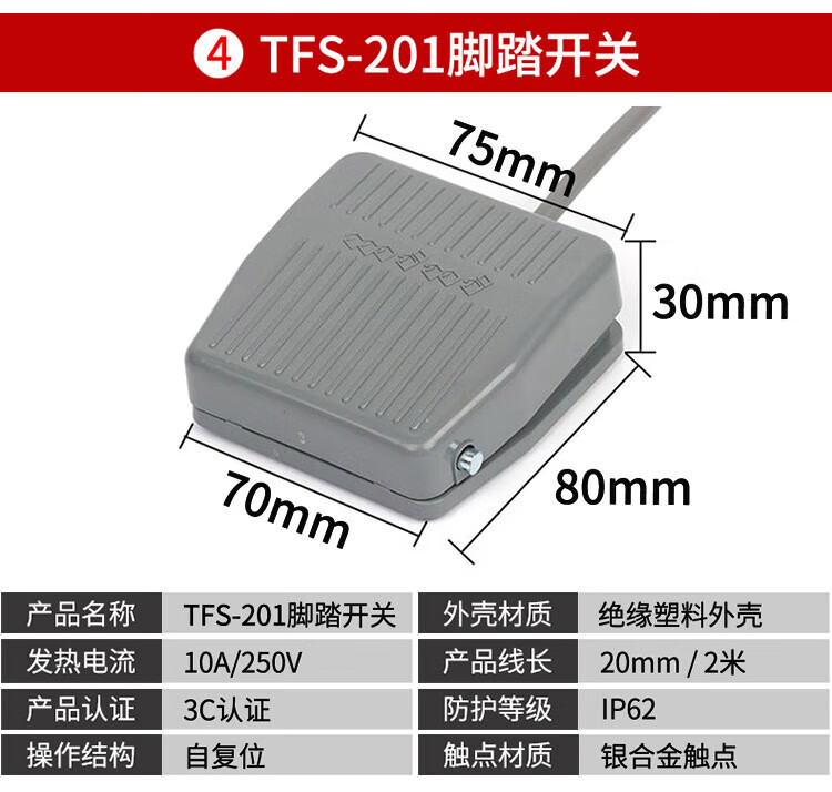 Kailan Intelligent Manufacturing TFS-201 foot switch foot switch with cable 220v foot switch TFS-201 cable length 1 meter - Silver Point
