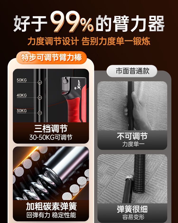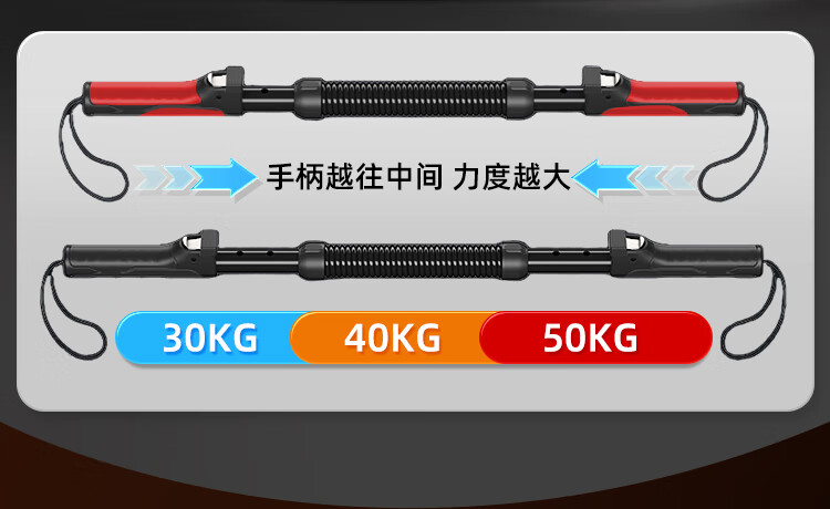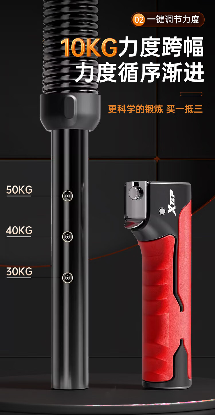 XTEP arm strength bar grip strength device for men, chest expander, arm strength spring, adjustable fitness home trainer 30-40-50KG