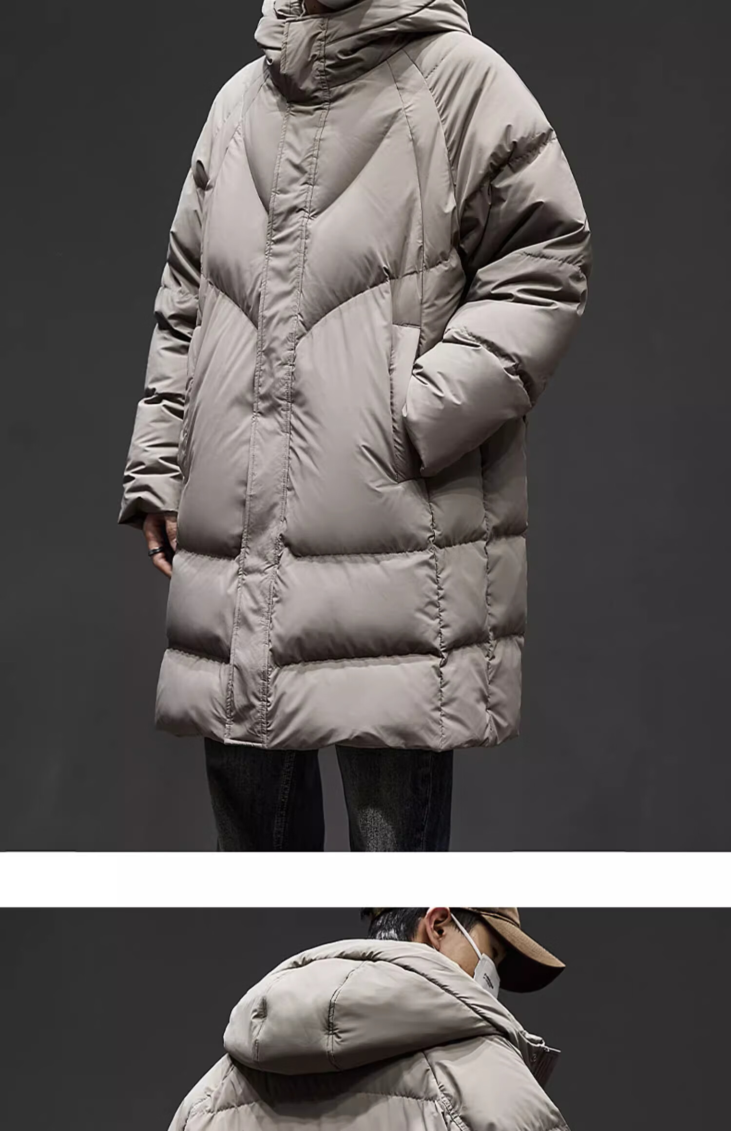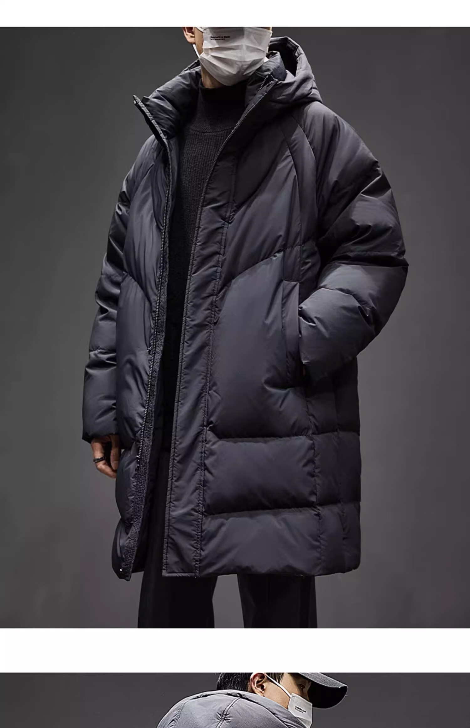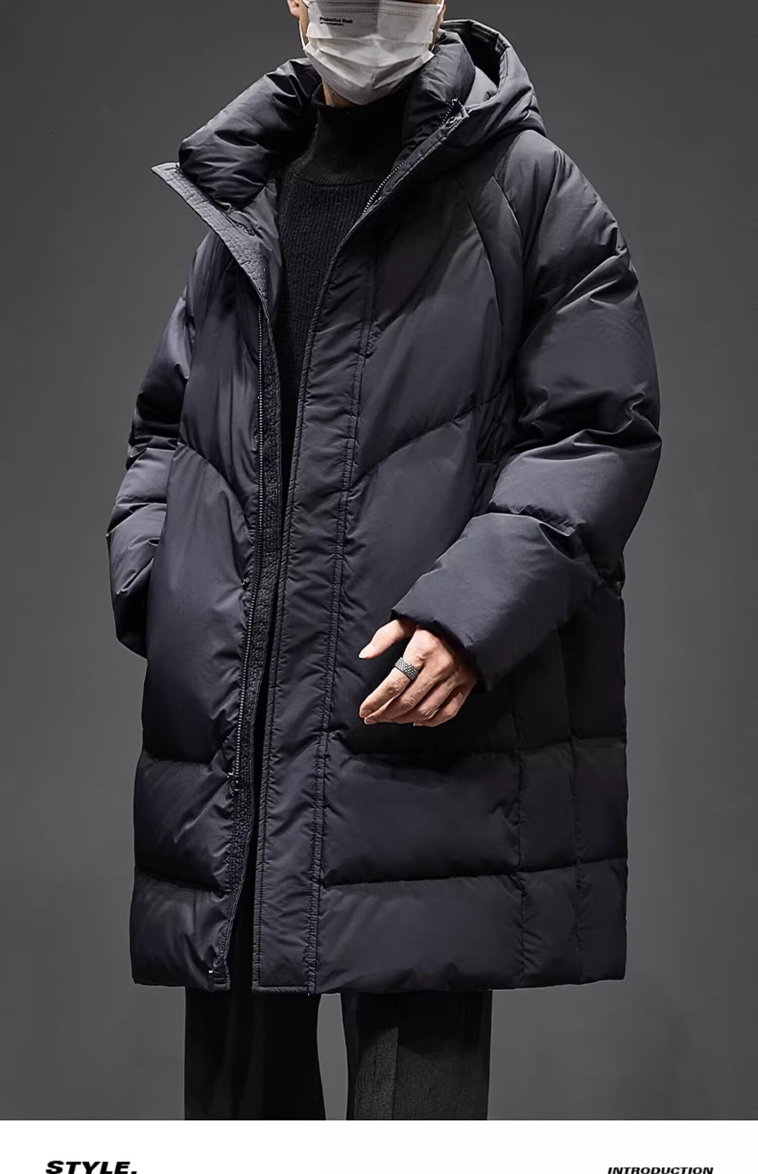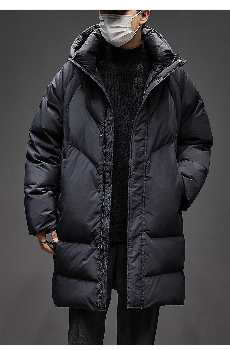 Romon mid-length men's down jacket men's new winter cold-proof thickened warm coat 90 white duck down hooded coat for men