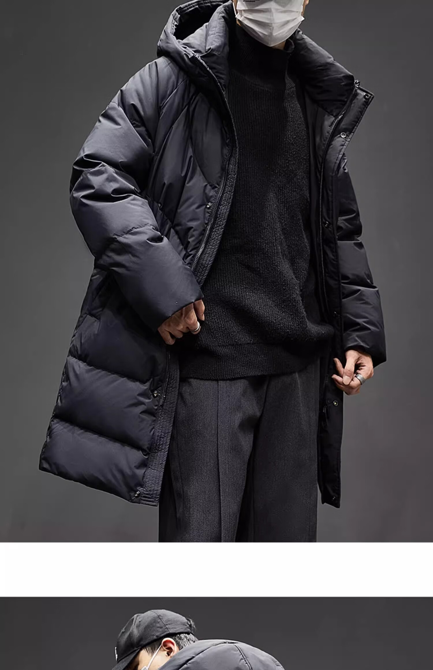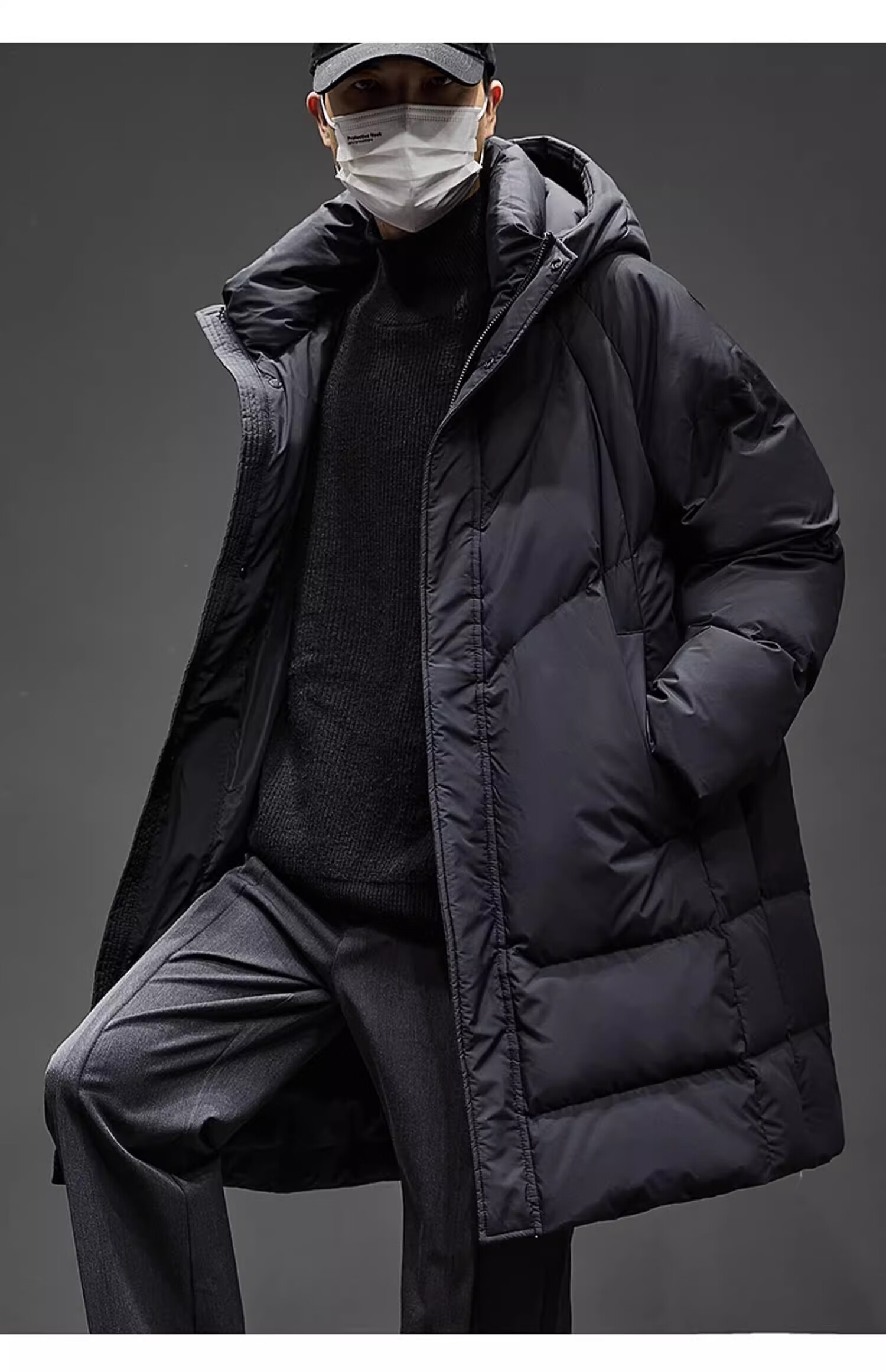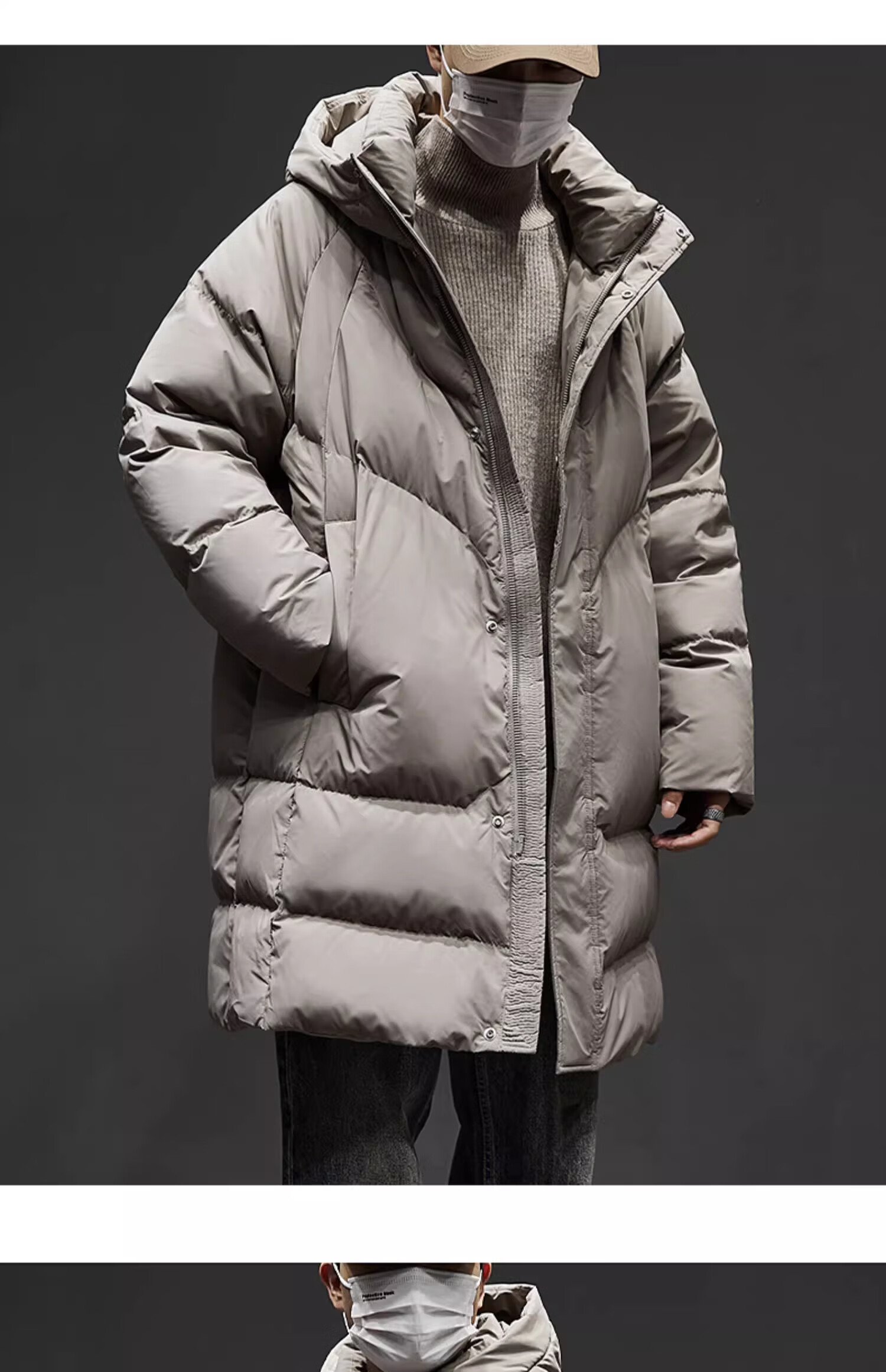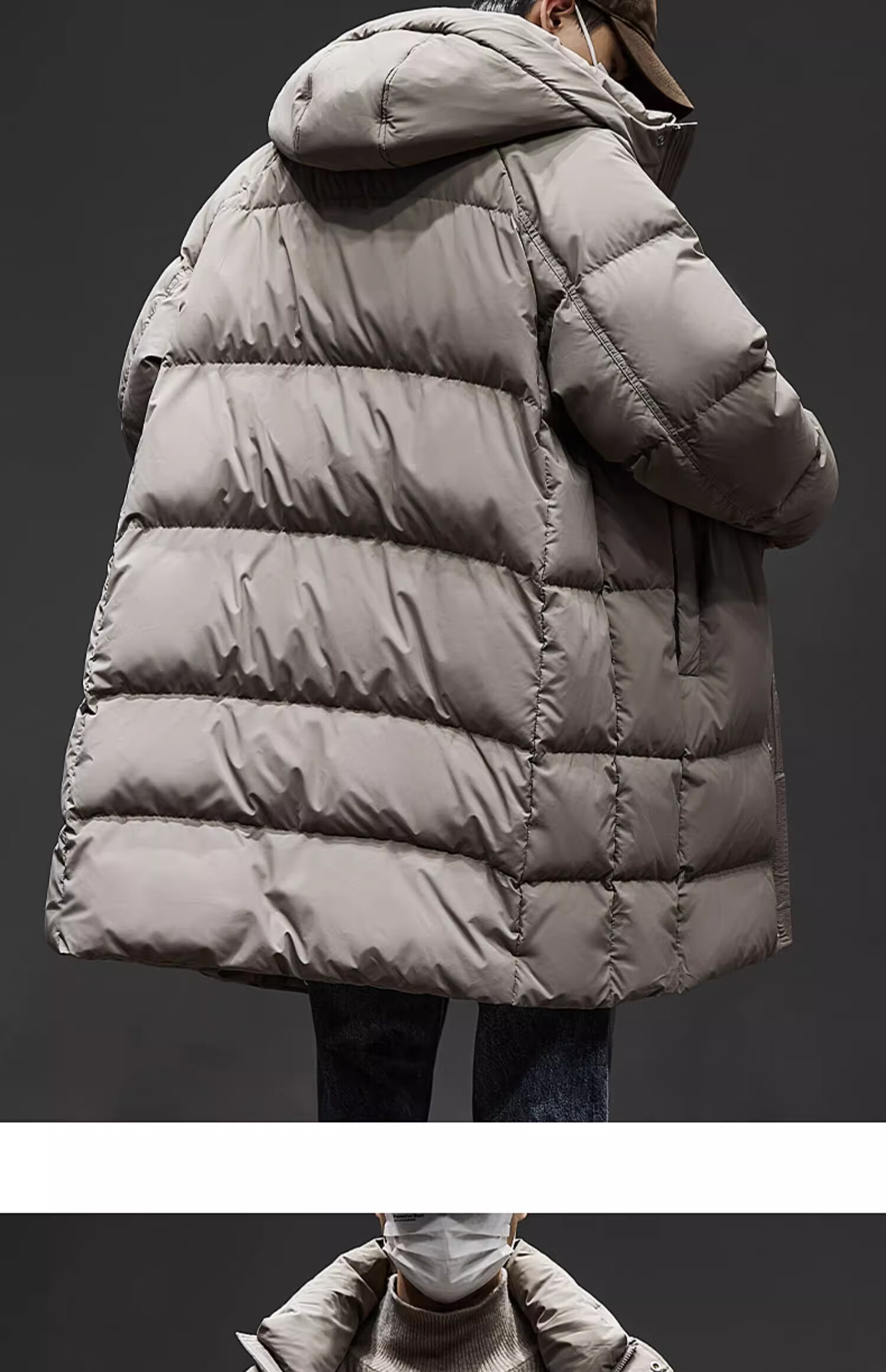 Romon mid-length men's down jacket men's new winter cold-proof thickened warm coat 90 white duck down hooded coat for men