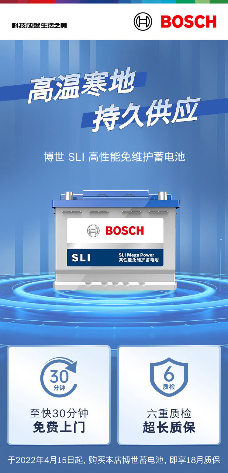 Bosch (BOSCH) car battery high-performance maintenance-free SLI series 75D23L 12V door-to-door installation old-for-new