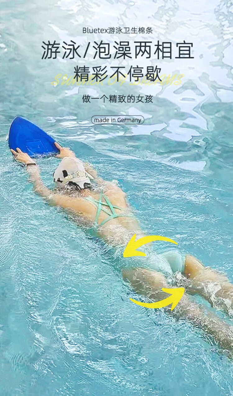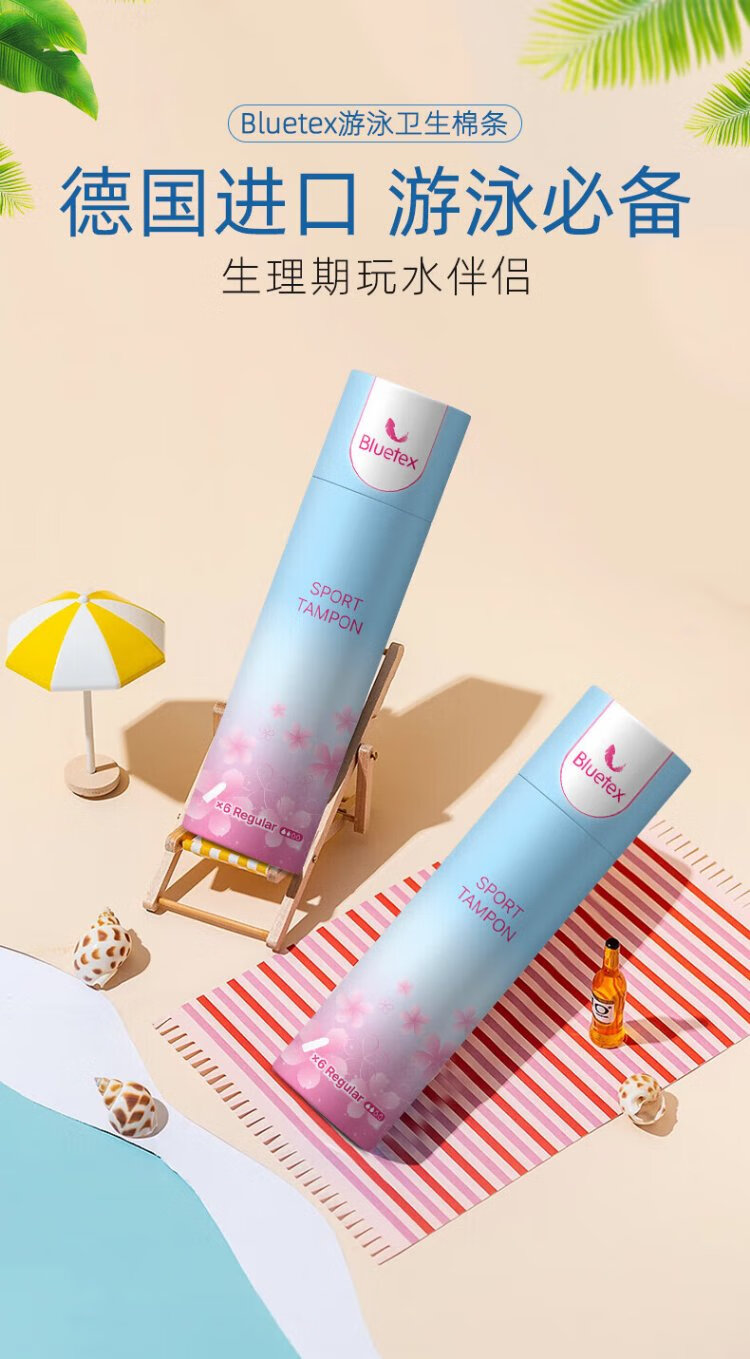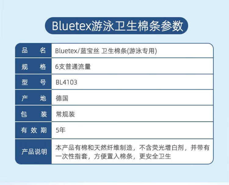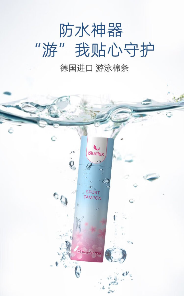 Bluetex tampons for swimming, vaginal insertion, waterproof, hot spring sanitary napkins, 6 pieces for menstrual period