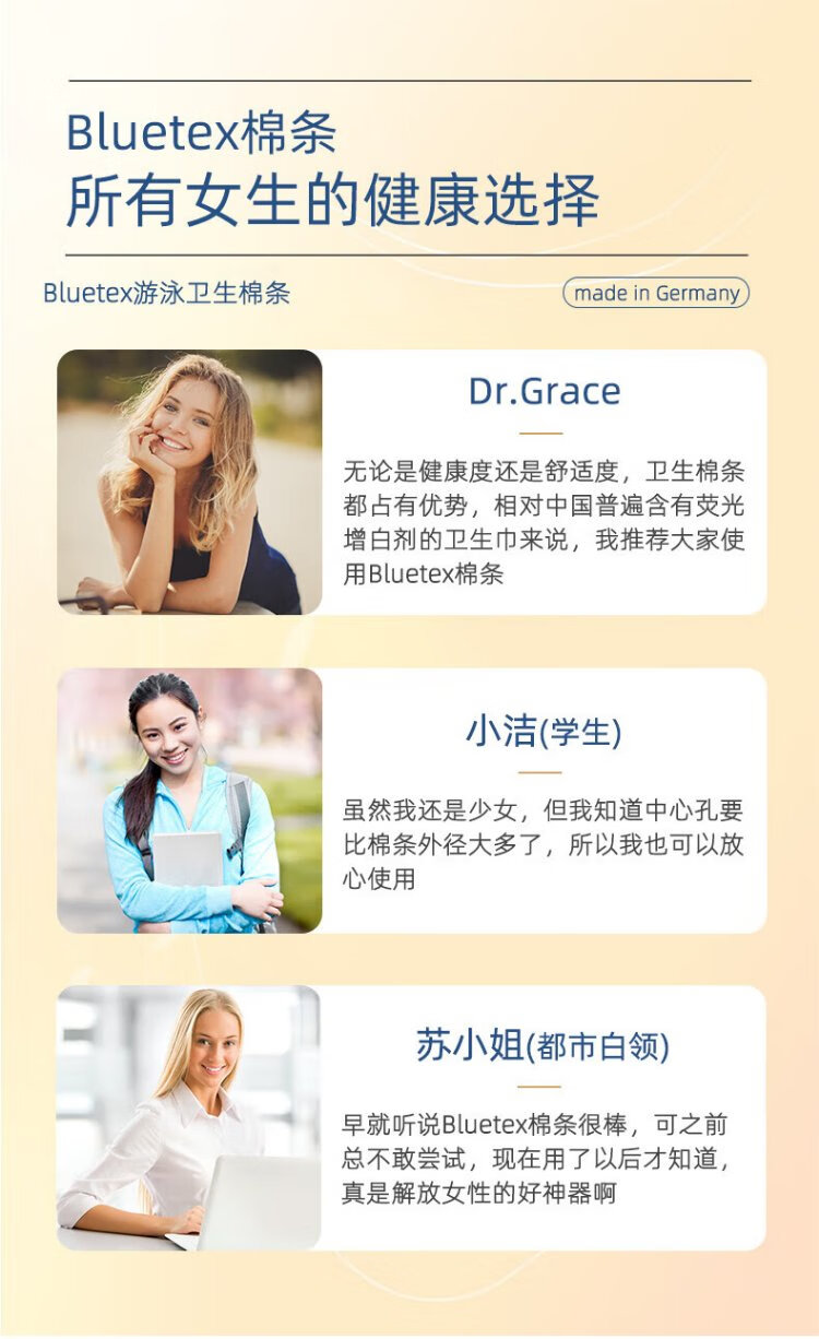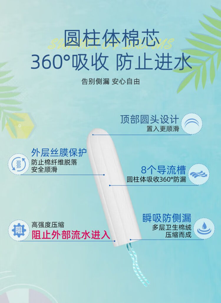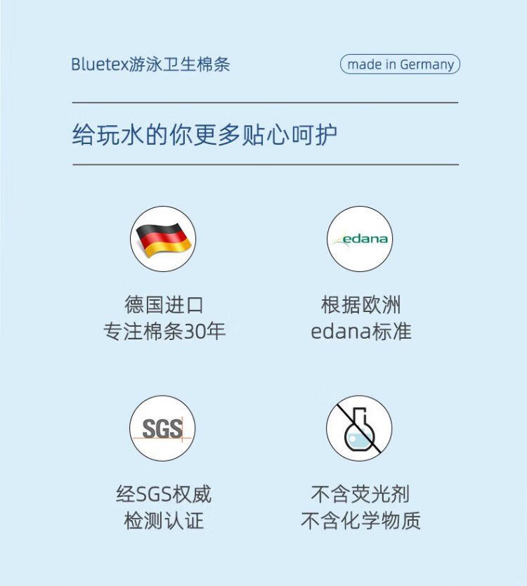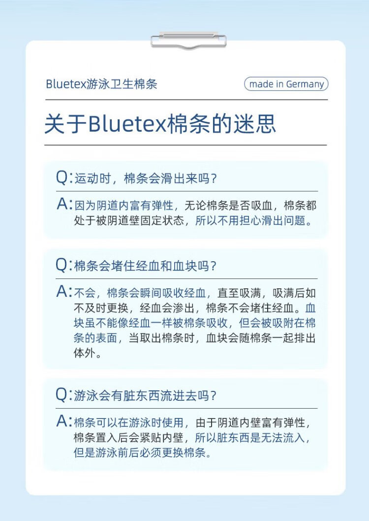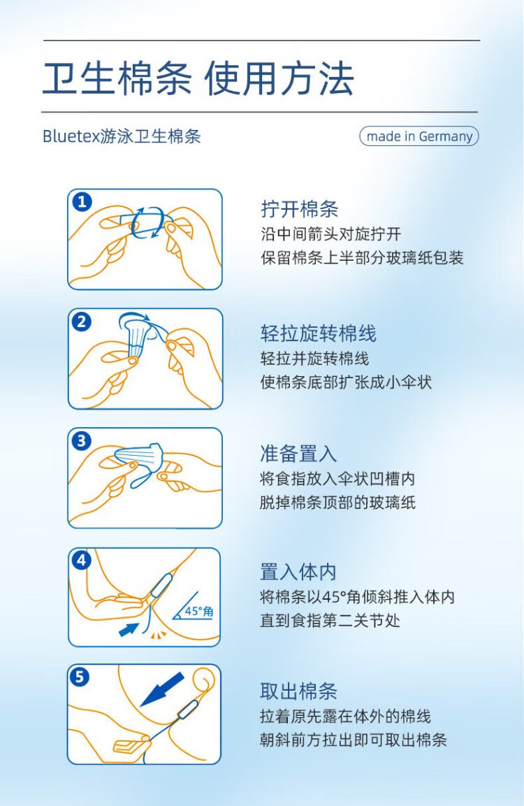 Bluetex tampons for swimming, vaginal insertion, waterproof, hot spring sanitary napkins, 6 pieces for menstrual period