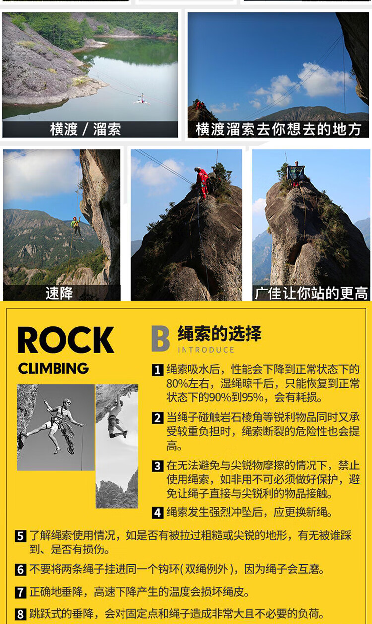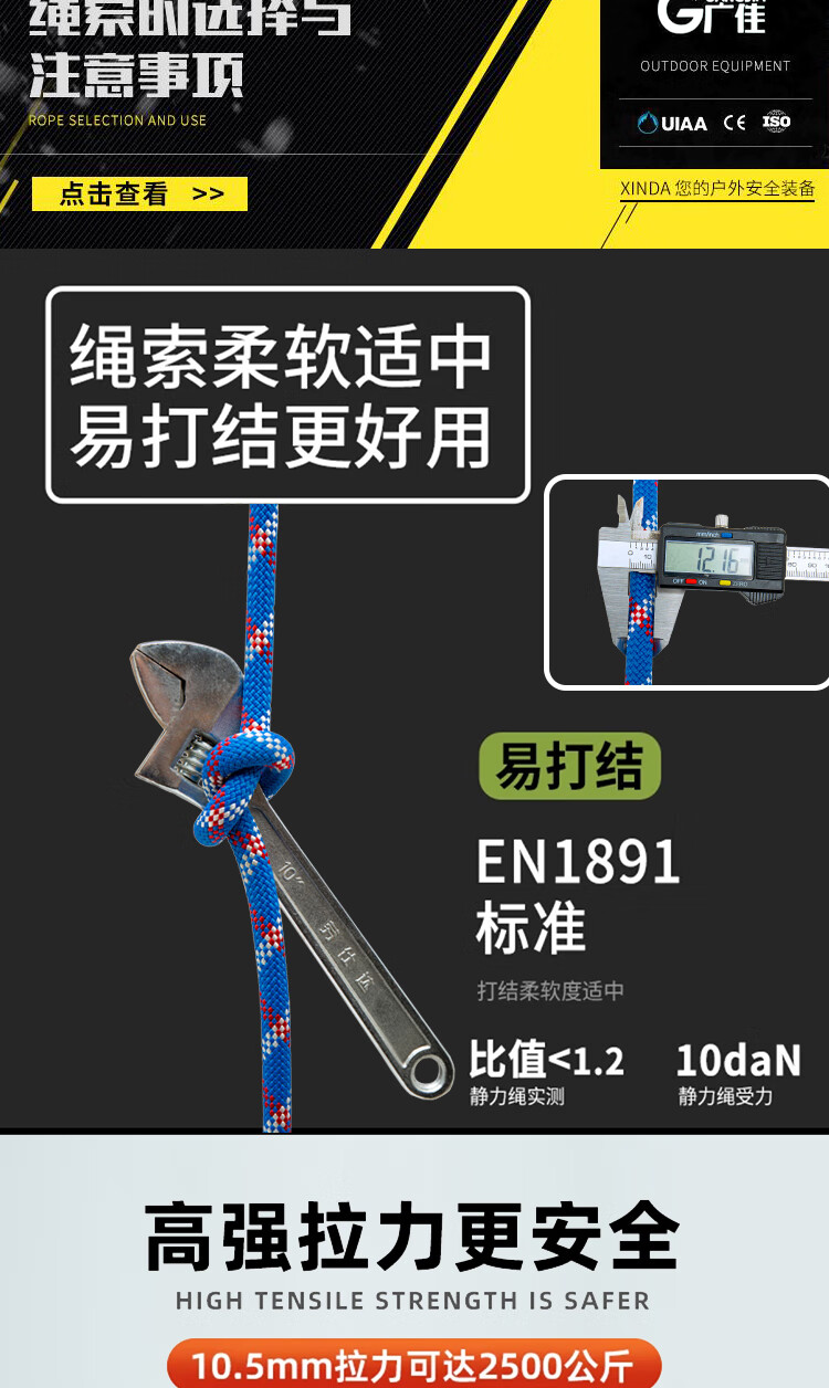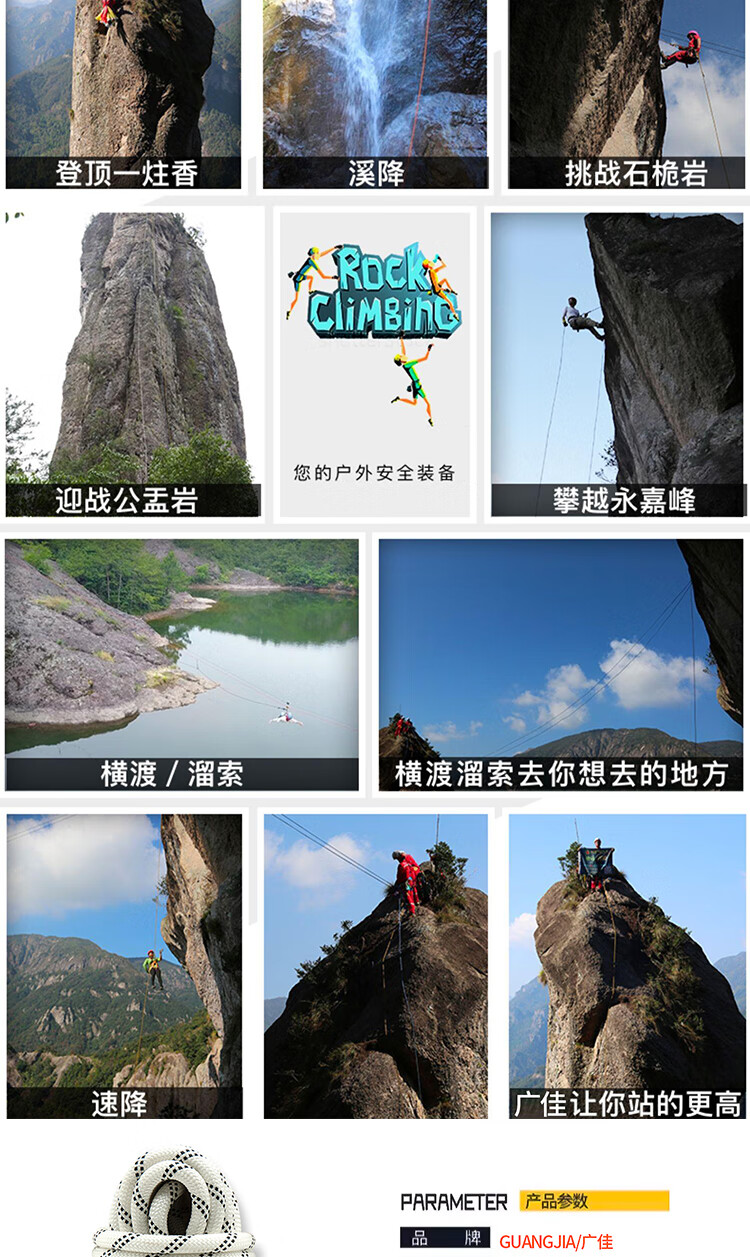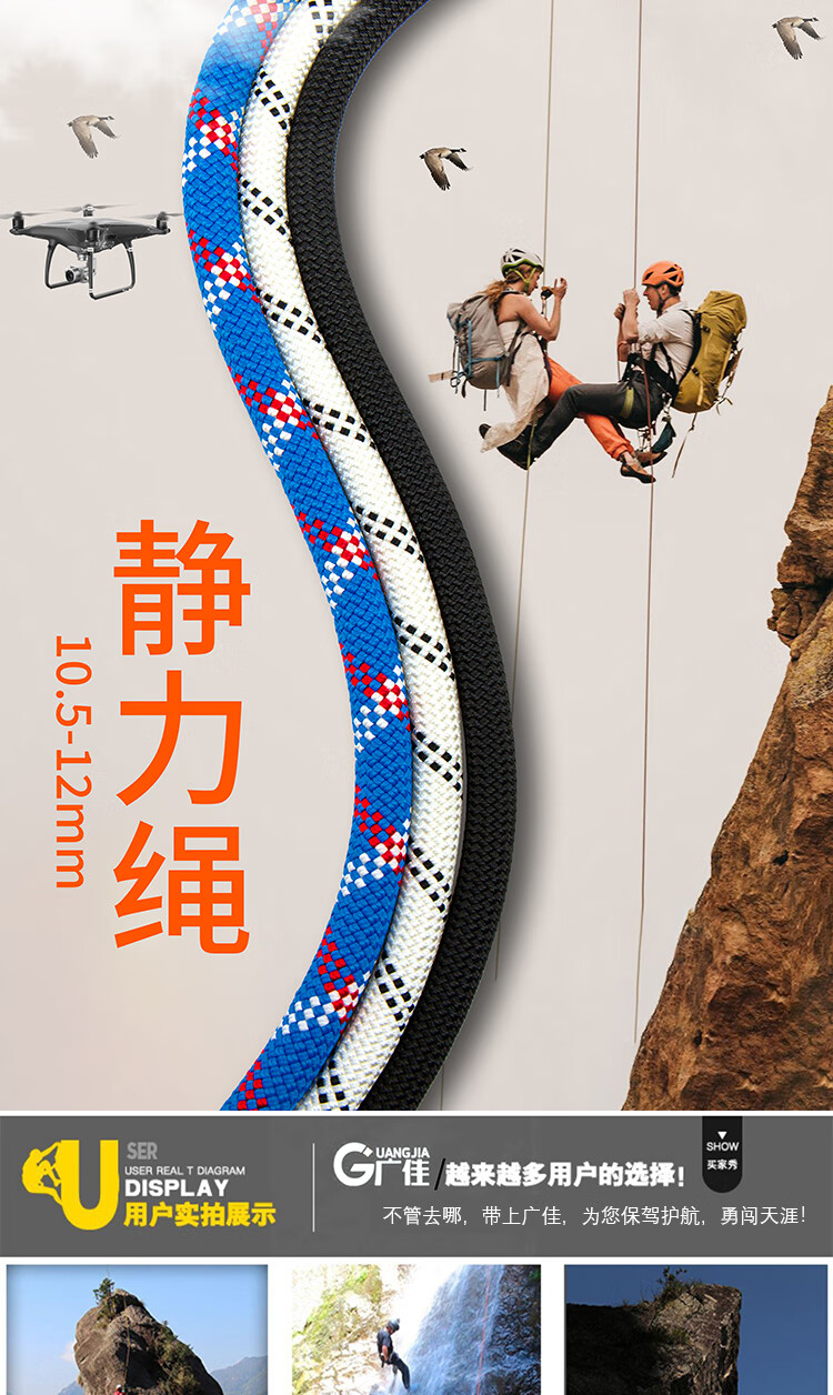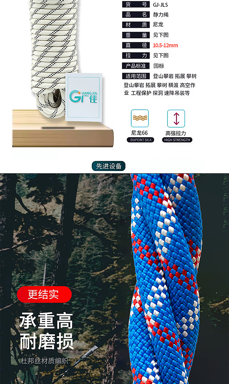 Guangjia static rope high-altitude work mountaineering rope rock climbing downhill safety rope high-strength tension rope 12mm30m