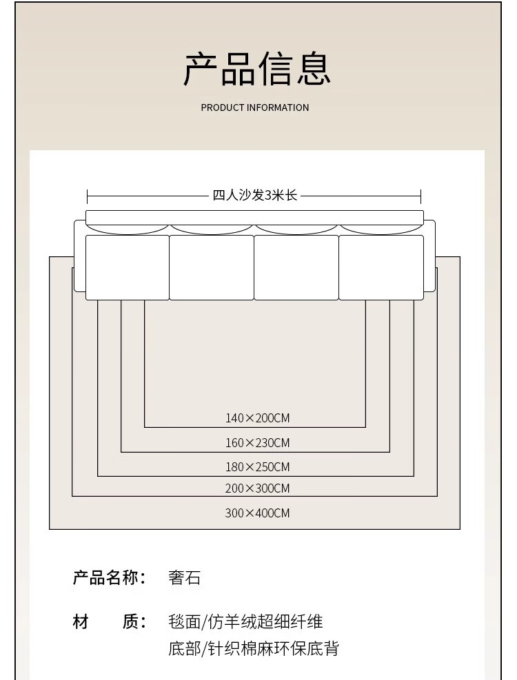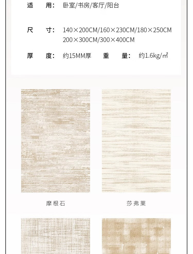 Jinghua carpet living room 2025 new light luxury high-end household cream style thickened floor mat Safrai 200*300CM