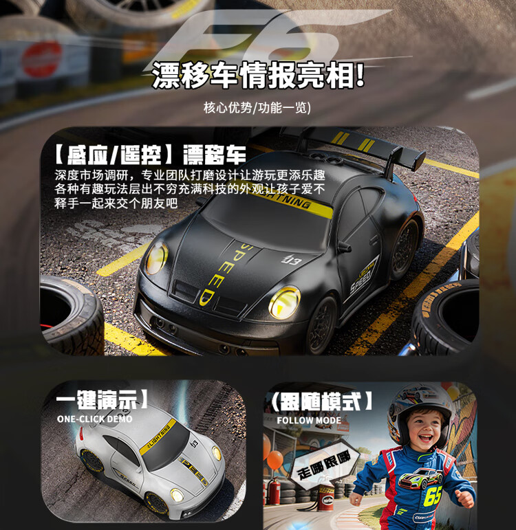 Ozhijia children's toys 1-3 years old remote control car desktop mini smart induction drift car black boy birthday gift