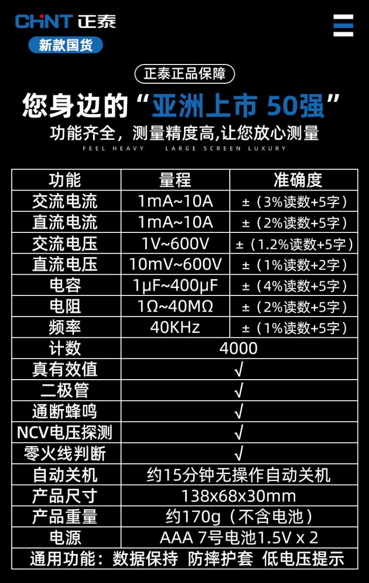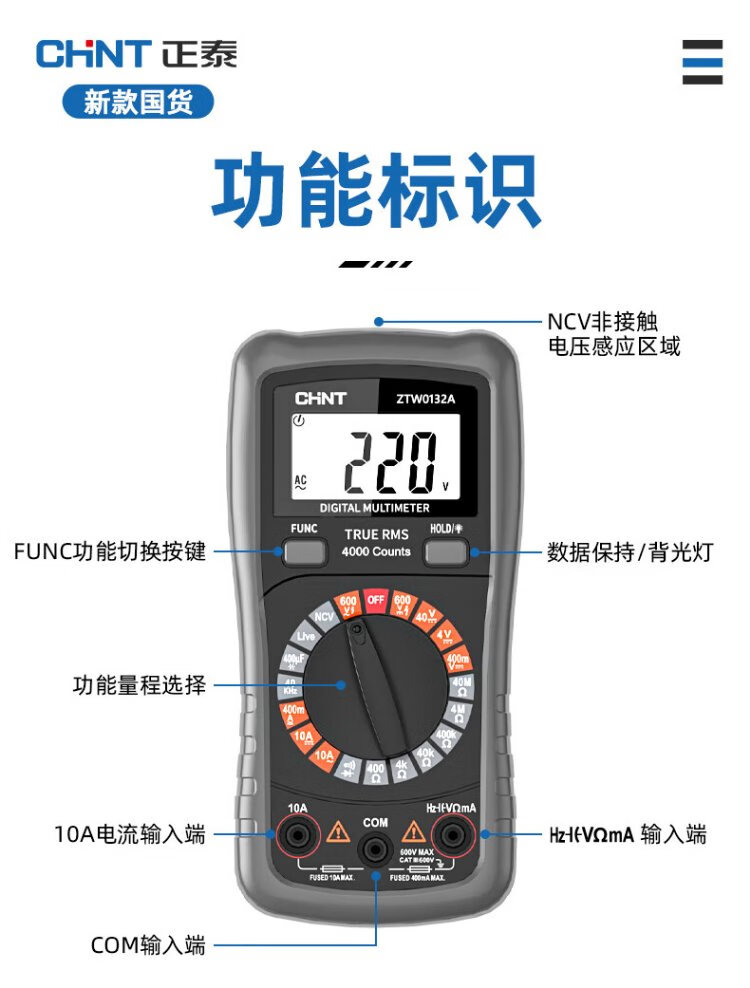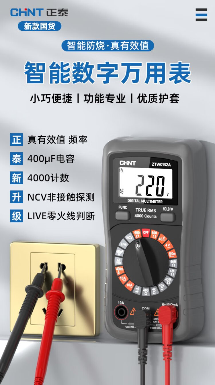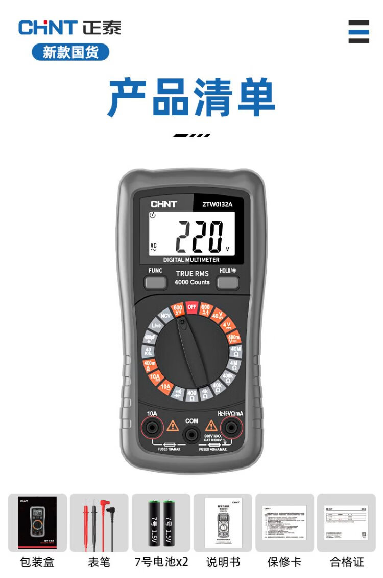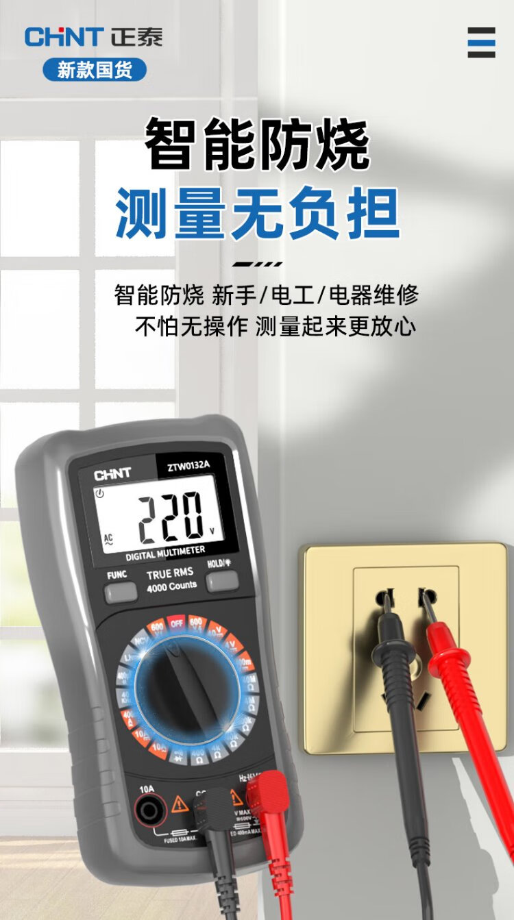 Chint multimeter high-precision intelligent anti-burn electrician maintenance household tools multimeter multi-function small table portable model