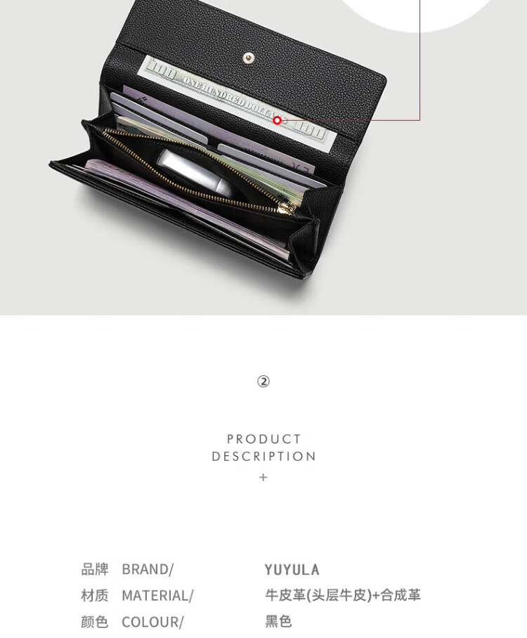 YUYULA cowhide women's wallet large capacity clutch bag long multi-card slot coin purse light luxury money wallet birthday gift