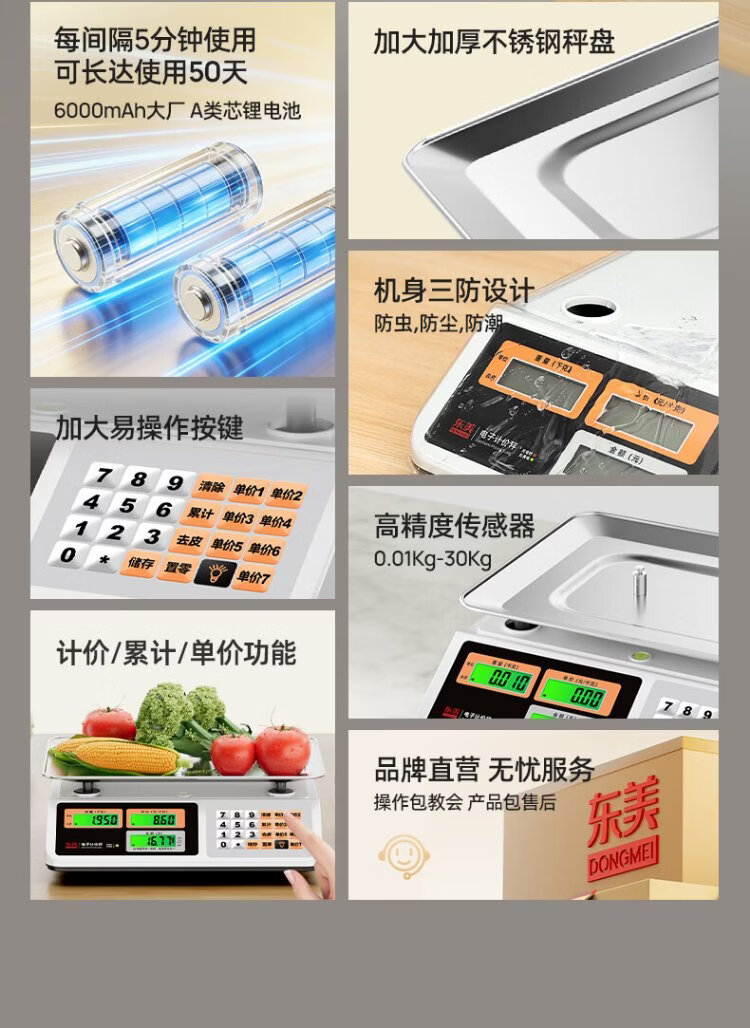 Dongmei (Dongmei) weighing electronic scale for commercial business use 30 kg platform scale for stall selling fruits and vegetables supermarket desktop pricing scale high-precision electronic weighing market special scale