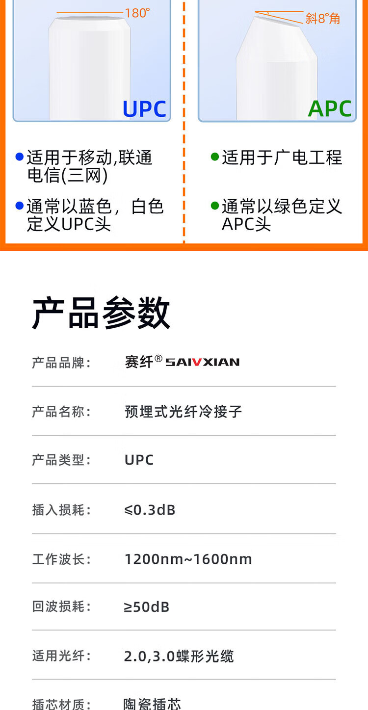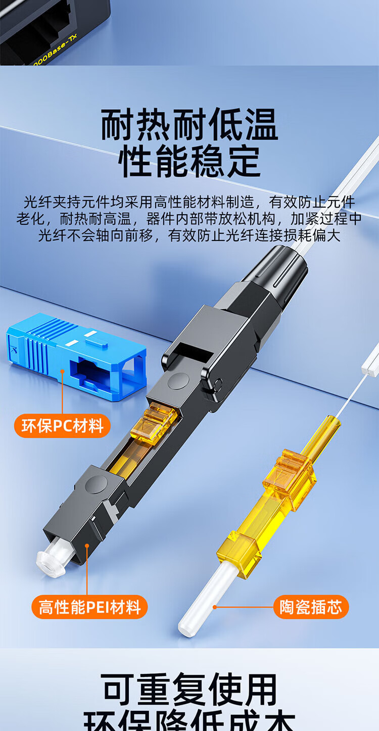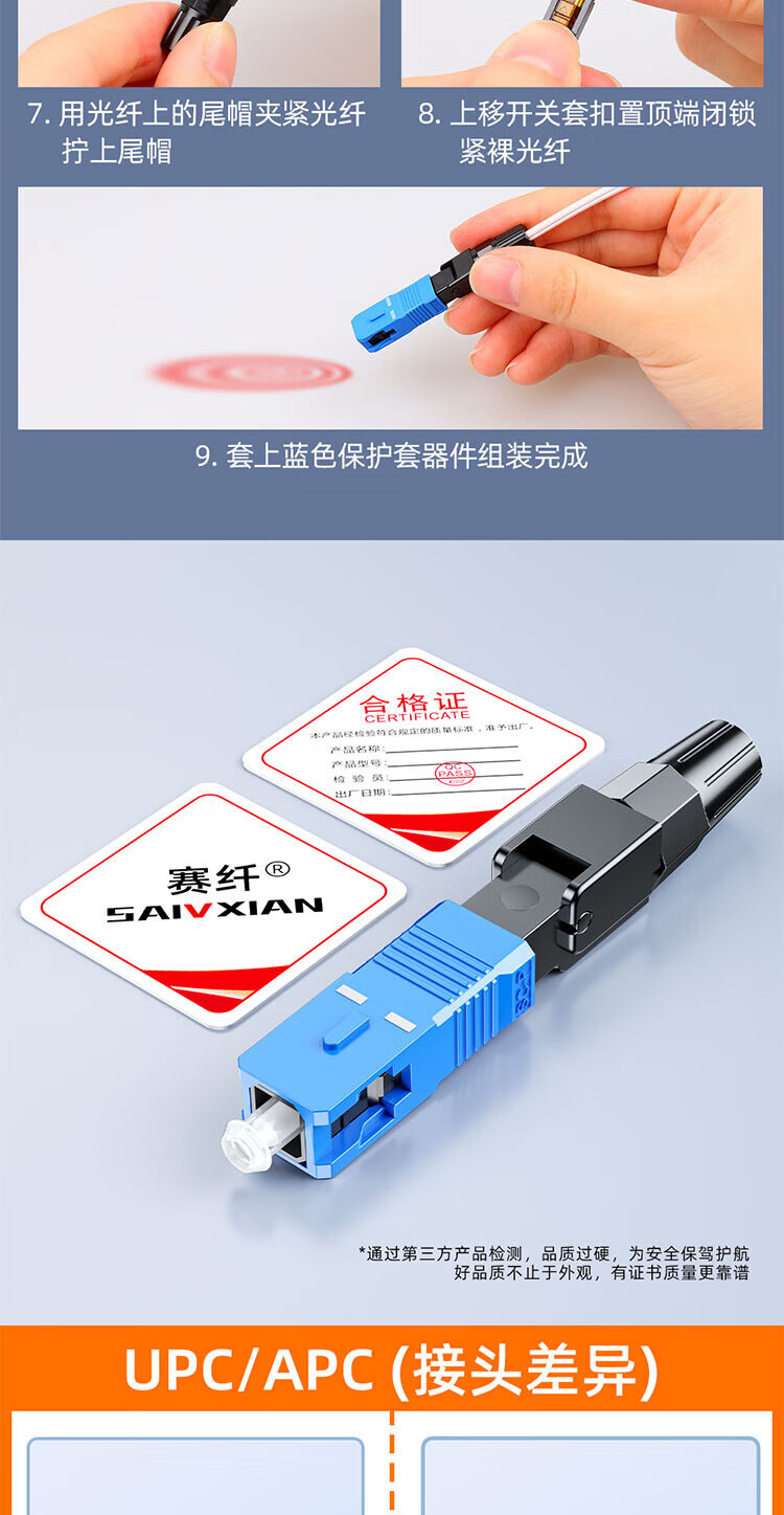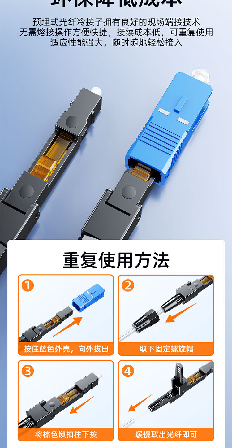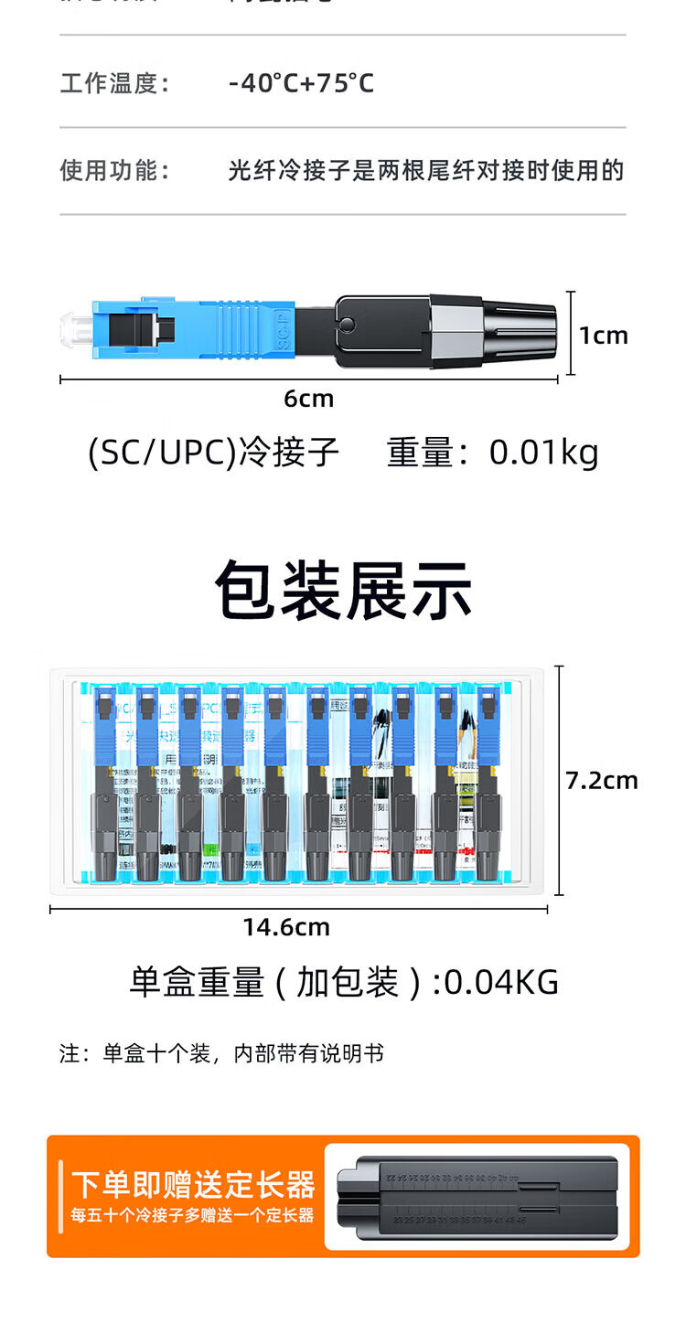 Sai Fiber fiber optic cold joint SC/UPC carrier-grade cold joint pre-embedded leather cable FTTH fiber optic home quick connector 50 pieces