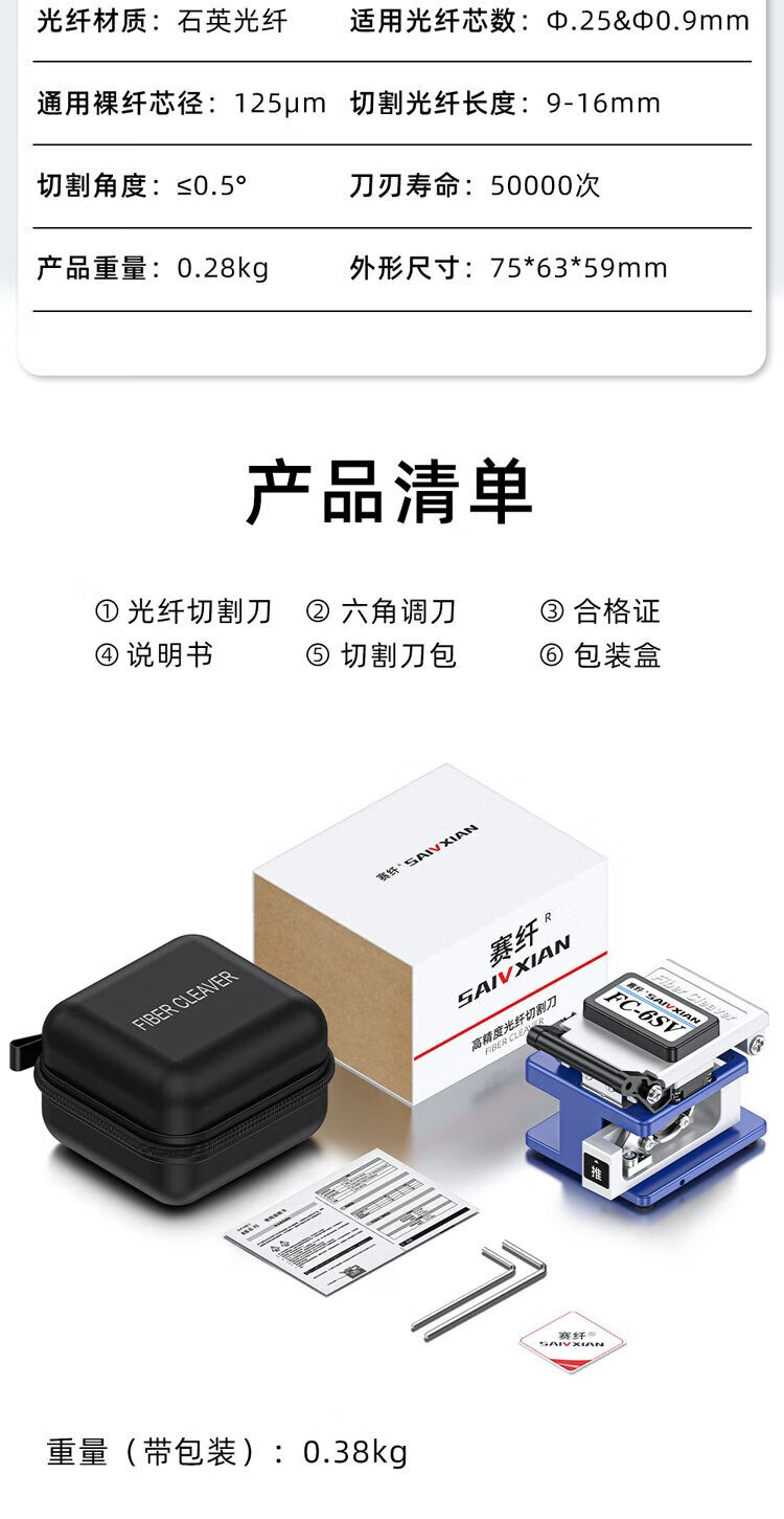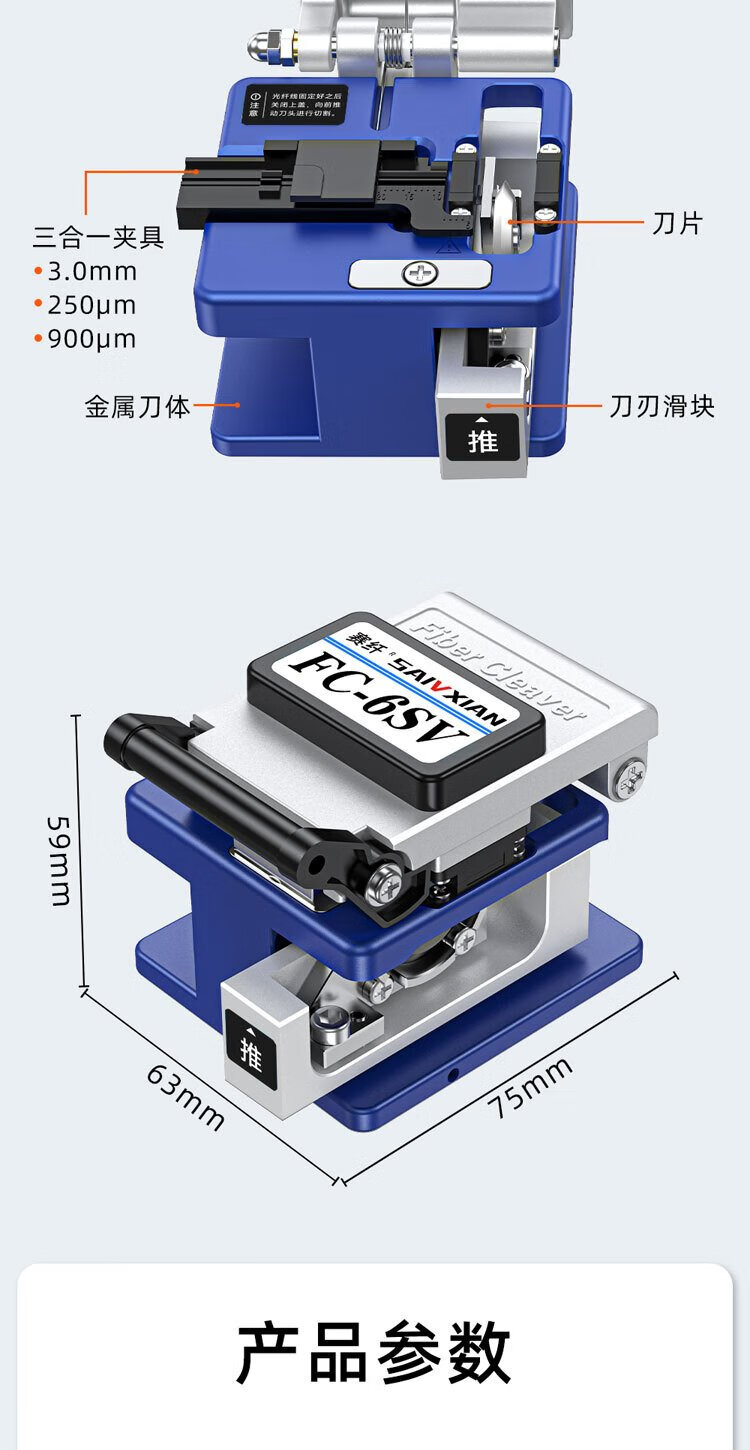 Sai Fiber fiber cutting knife FC-6SV cold splicing hot melt precision leather cable multi-specification universal high-precision fully automatic return knife FTTH optical fiber home hot melt cold splicing special cutter