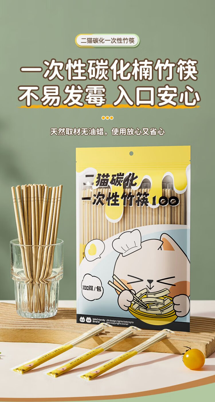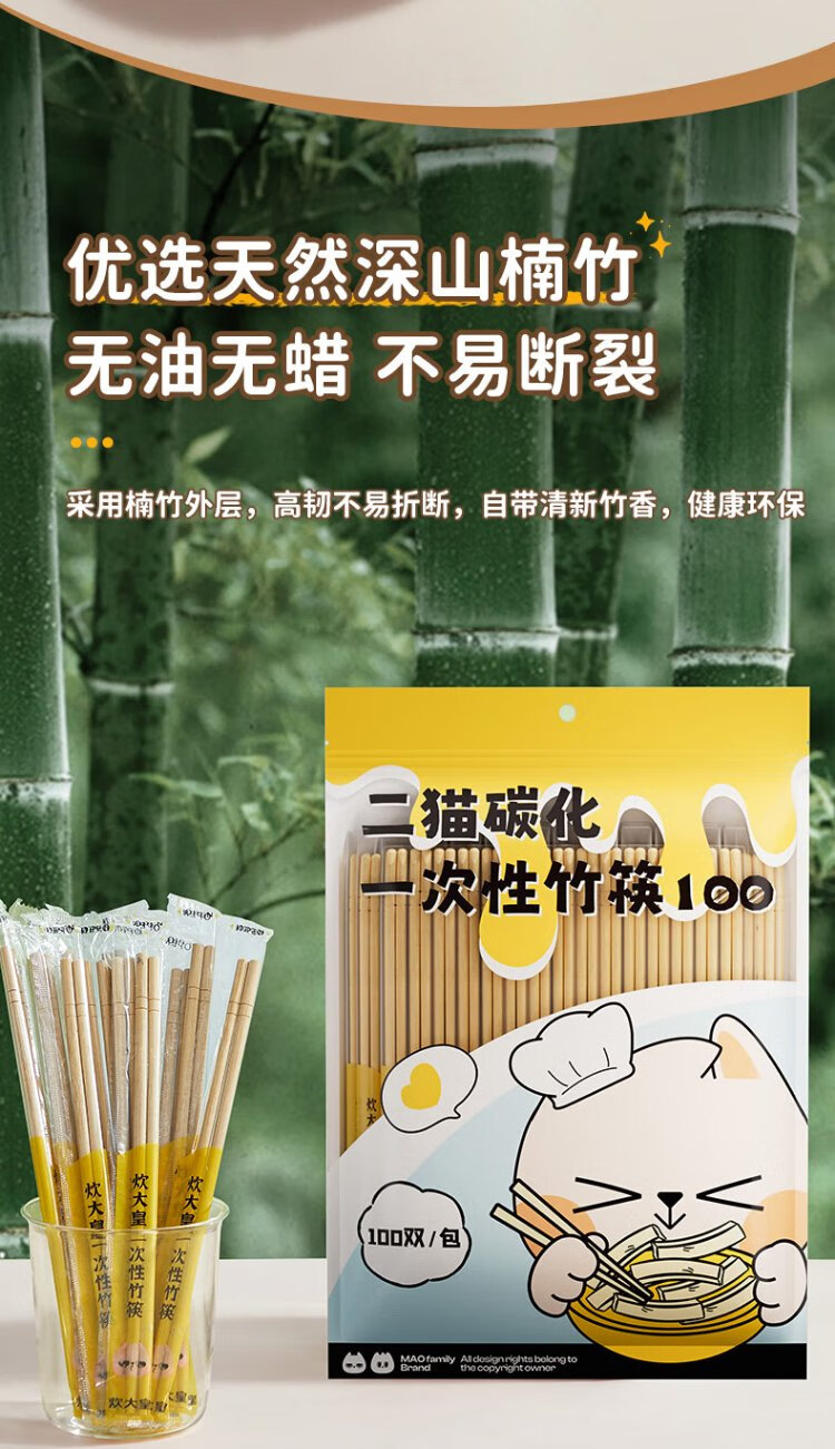 Cui Dahuang disposable bamboo chopsticks carbonized bamboo chopsticks individually packaged 100 pairs of household fast food convenient take-out tableware no-wash chopsticks