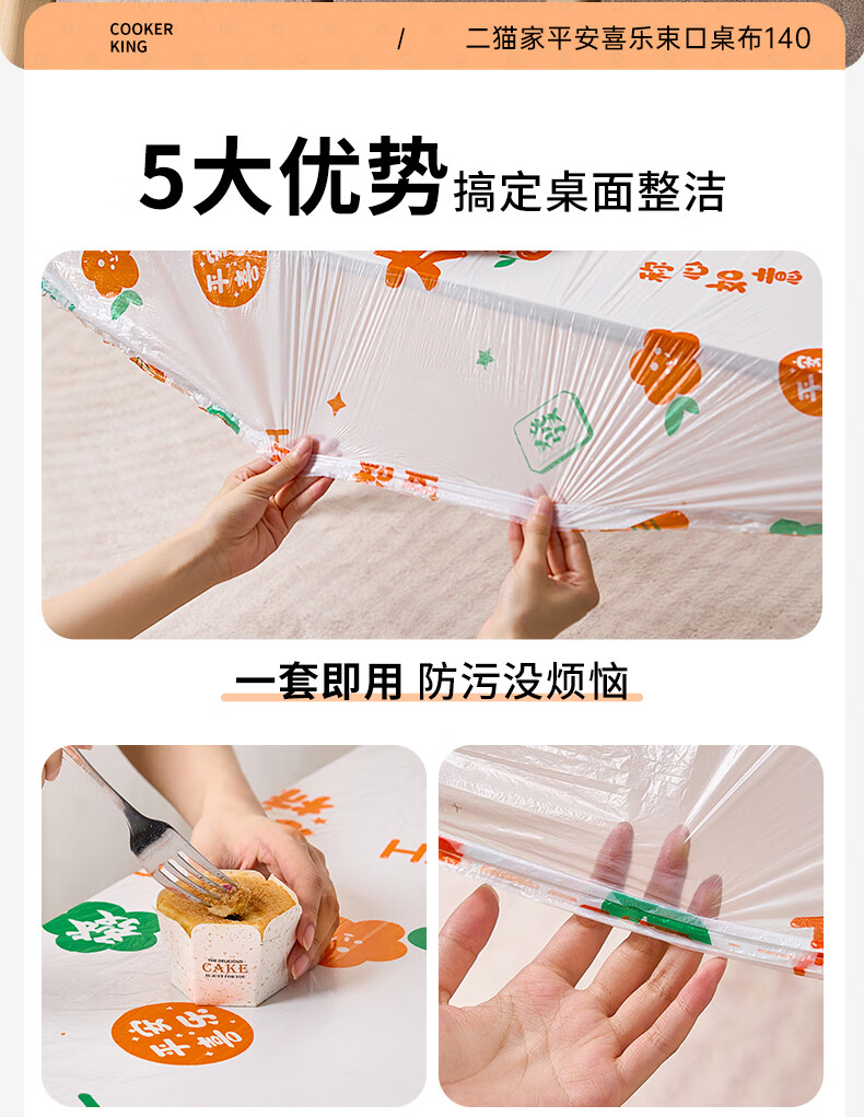 Cui Dahuang disposable tablecloth bundle mouth tablecloth 1.6 meters square round tablecloth 8 placemats household picnic waterproof tablecloth