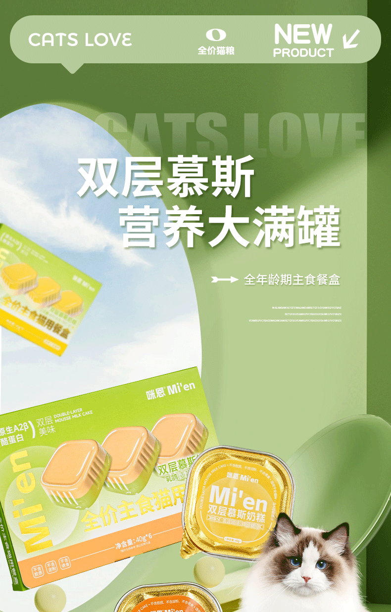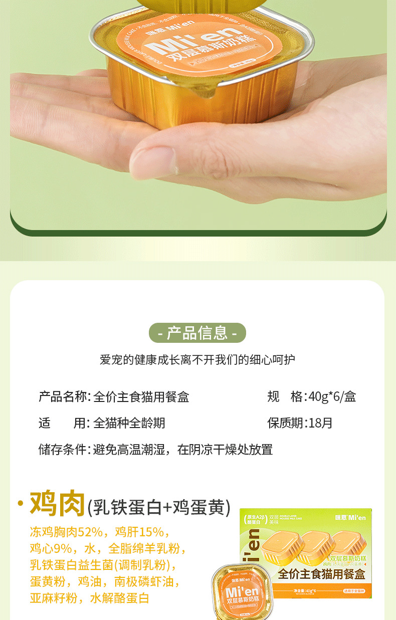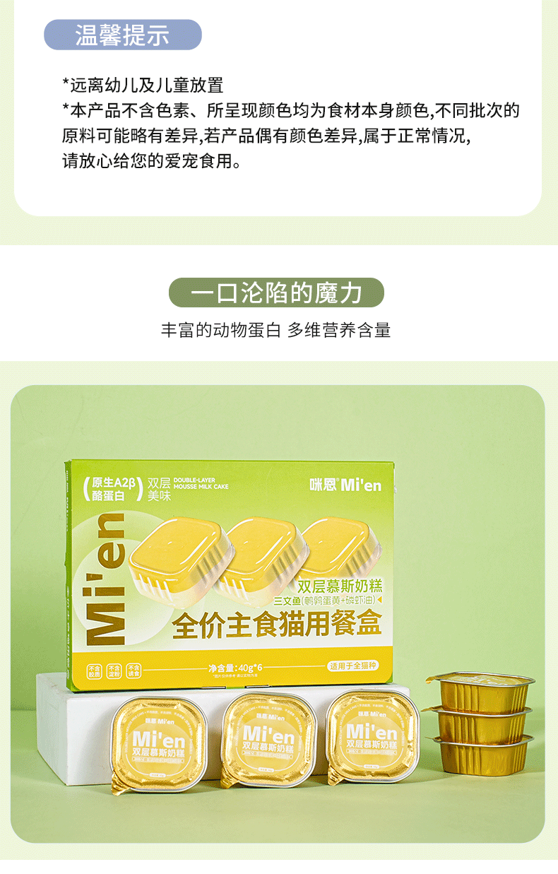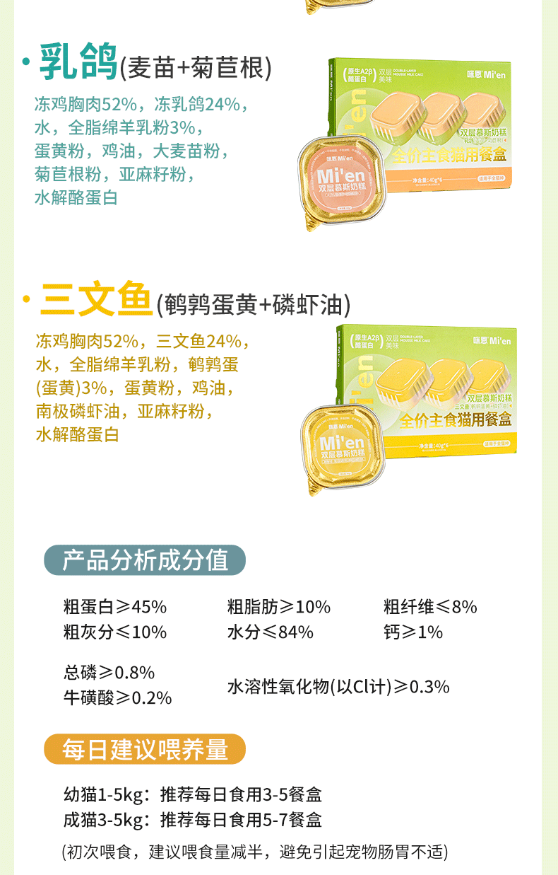 Mien Cat canned full-price staple food lunch box for adult cats and kittens, hydrating wet food cat rice, mixed flavors 40g*6 cans