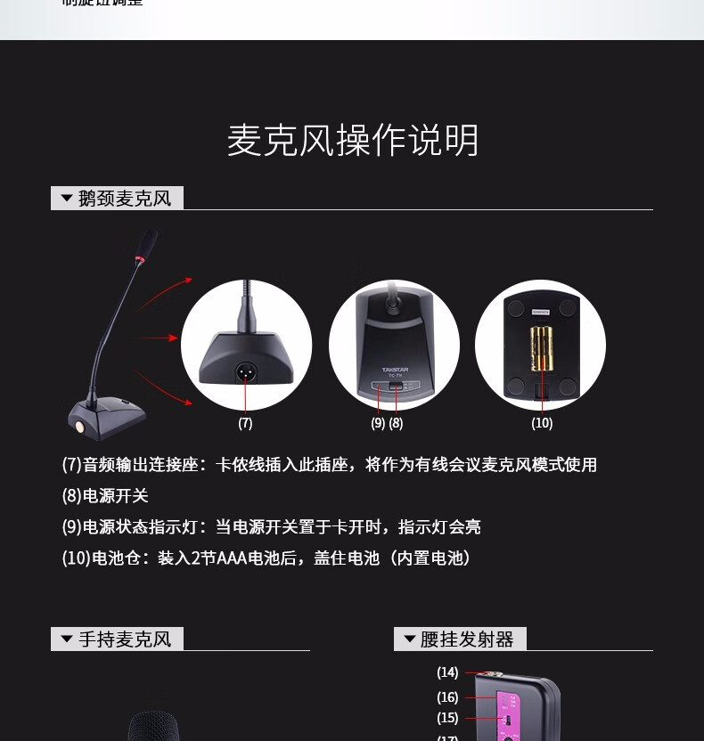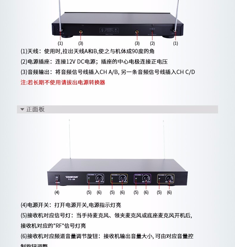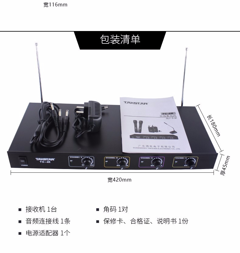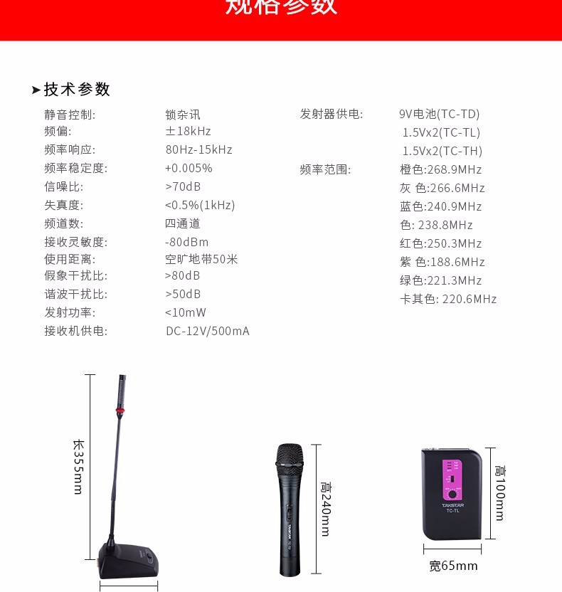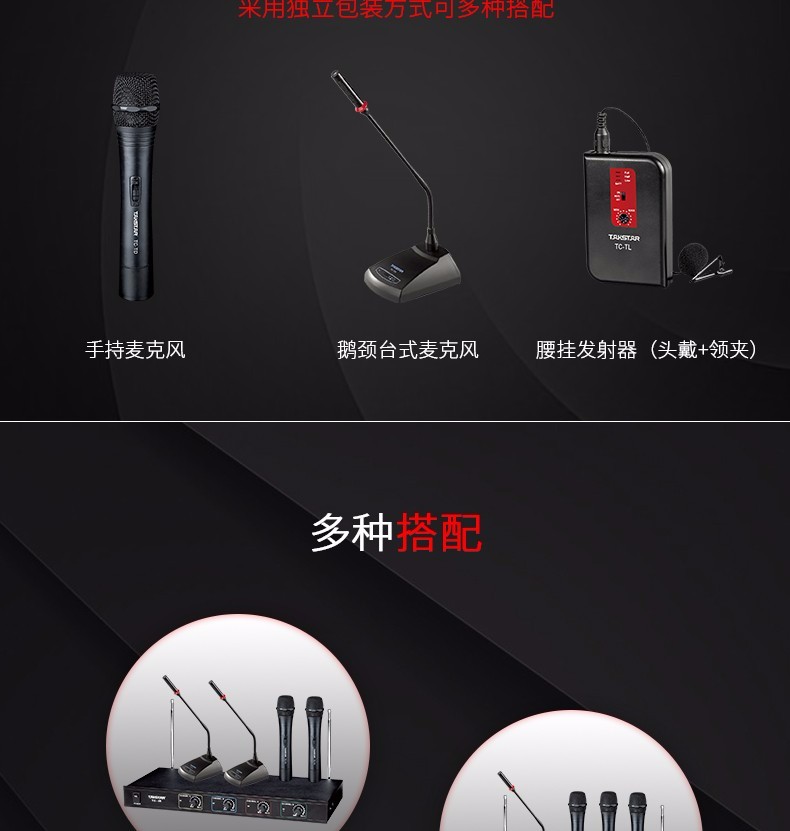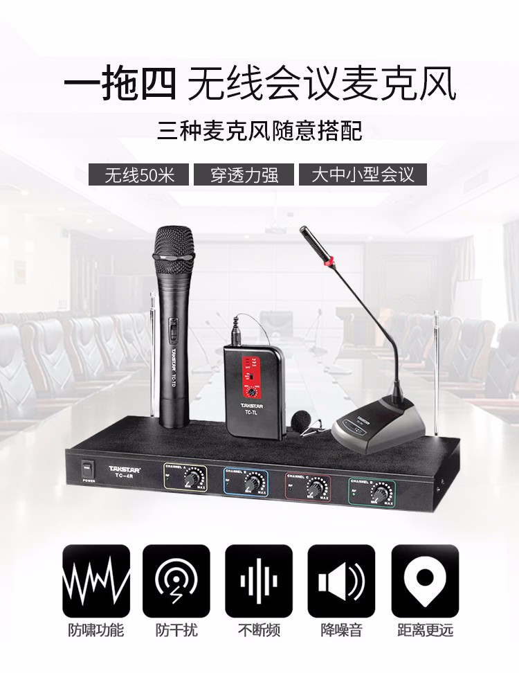 TAKSTAR TC4R Wireless Microphone One to Four Conference Microphone Gooseneck Handheld Lavalier Home KTV Microphone Stage Performance Hosting Speech Host + 4 Conferences