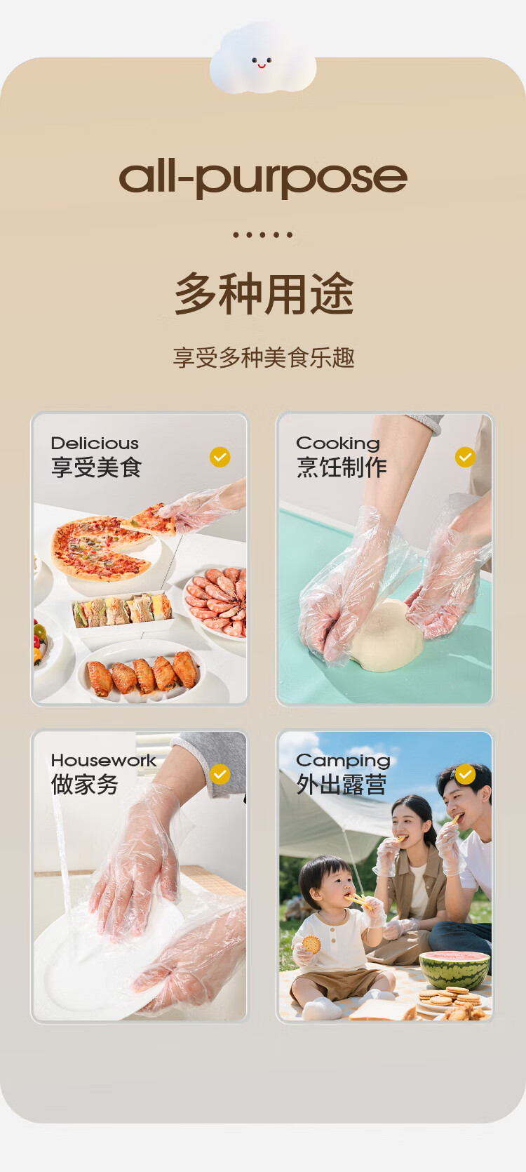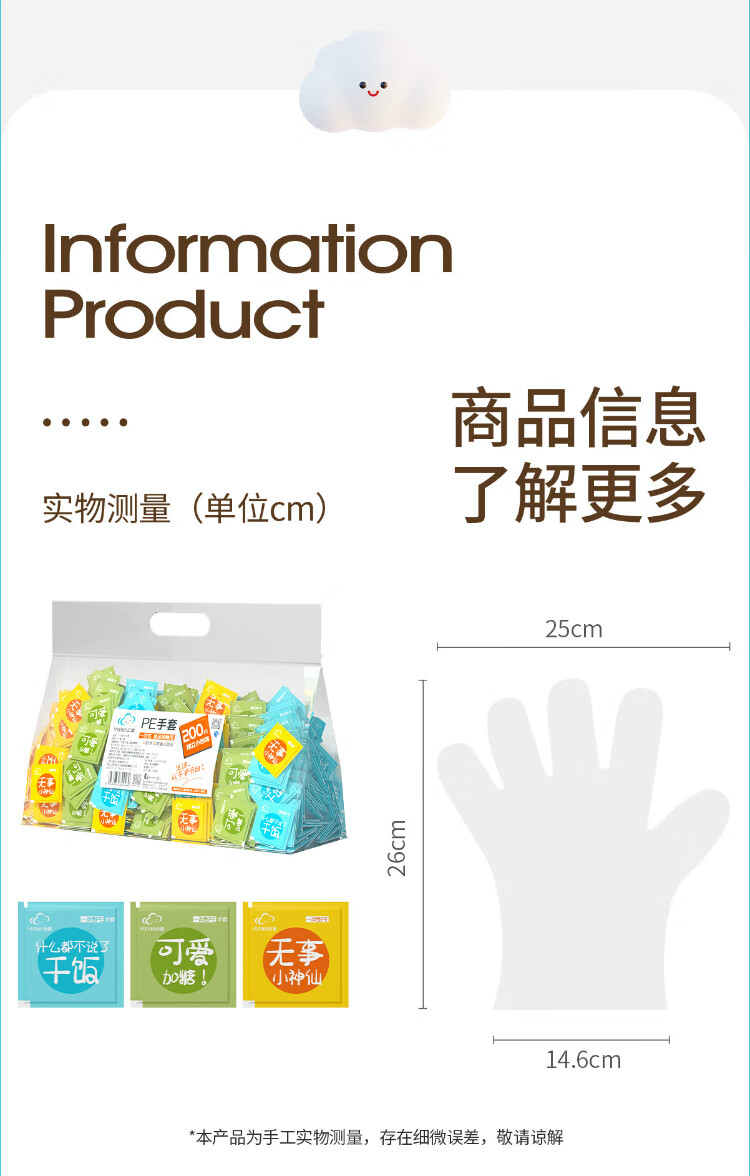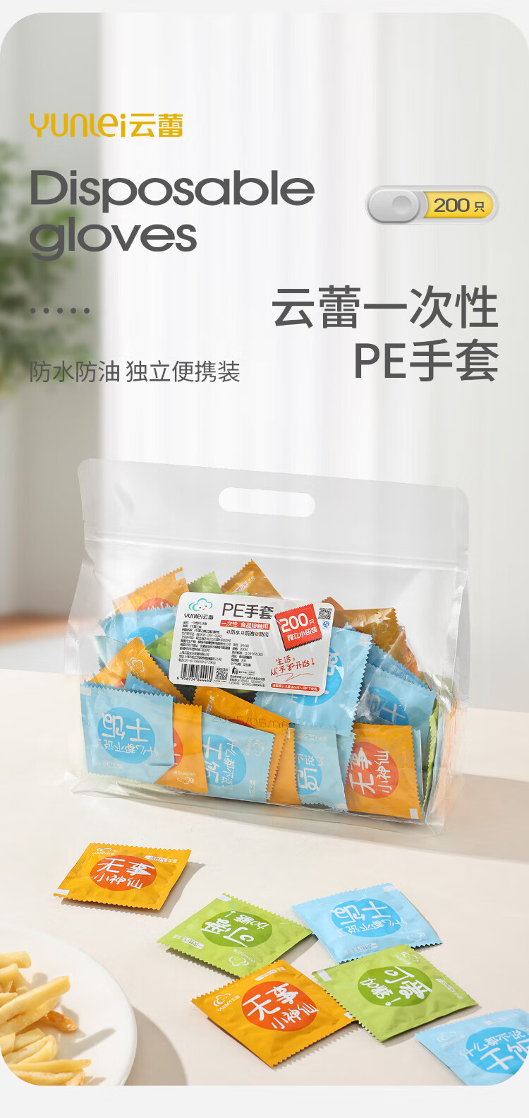 Yunlei disposable gloves individually packaged adult food contact packets for home takeout crayfish 100 pairs