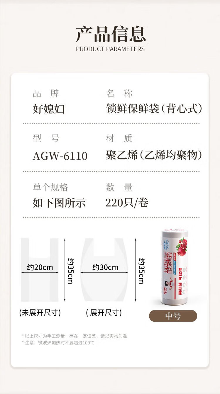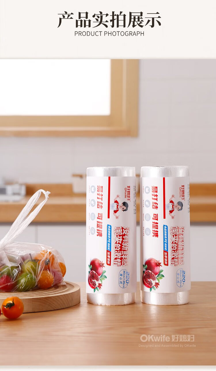 Good Wife disposable fresh-keeping bag food grade vest style 220 pieces medium size 35*30cm refrigerated packaging bag thickened