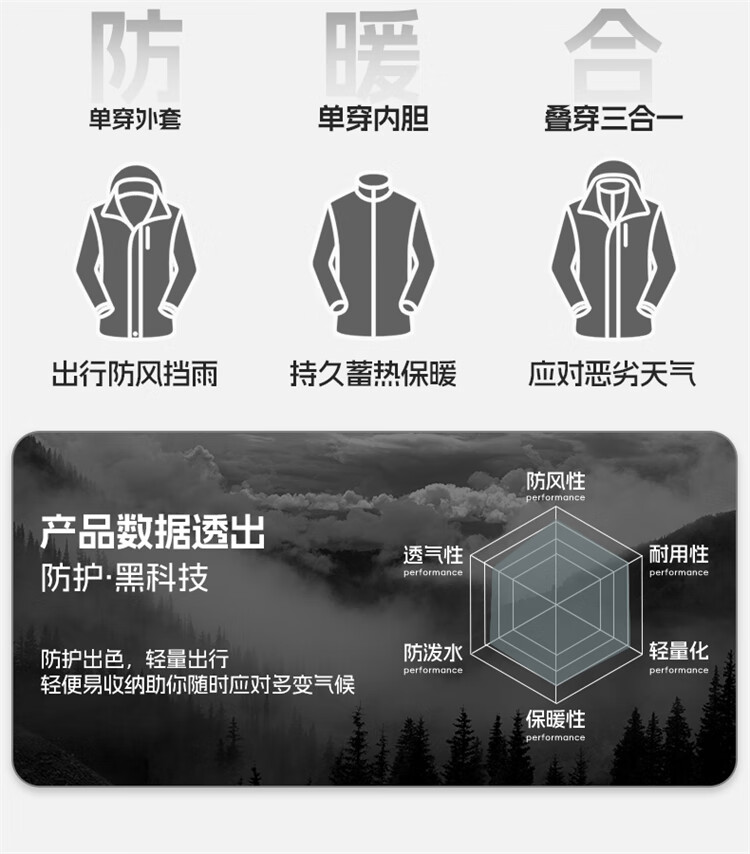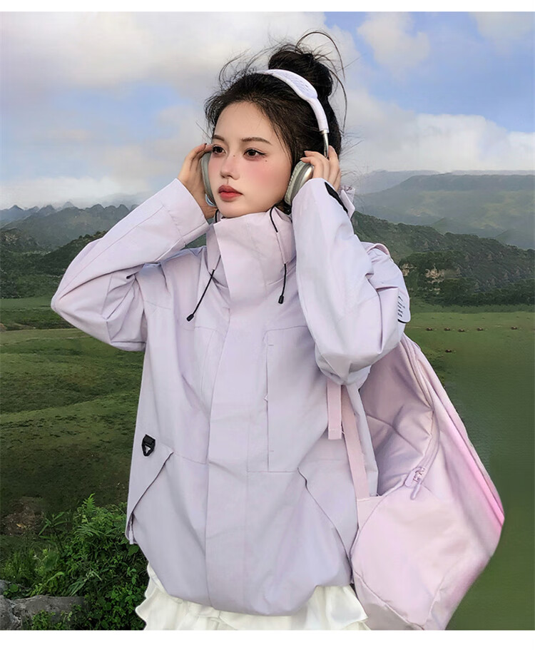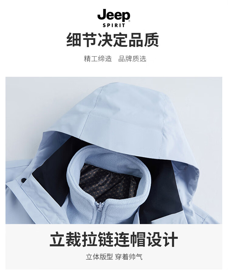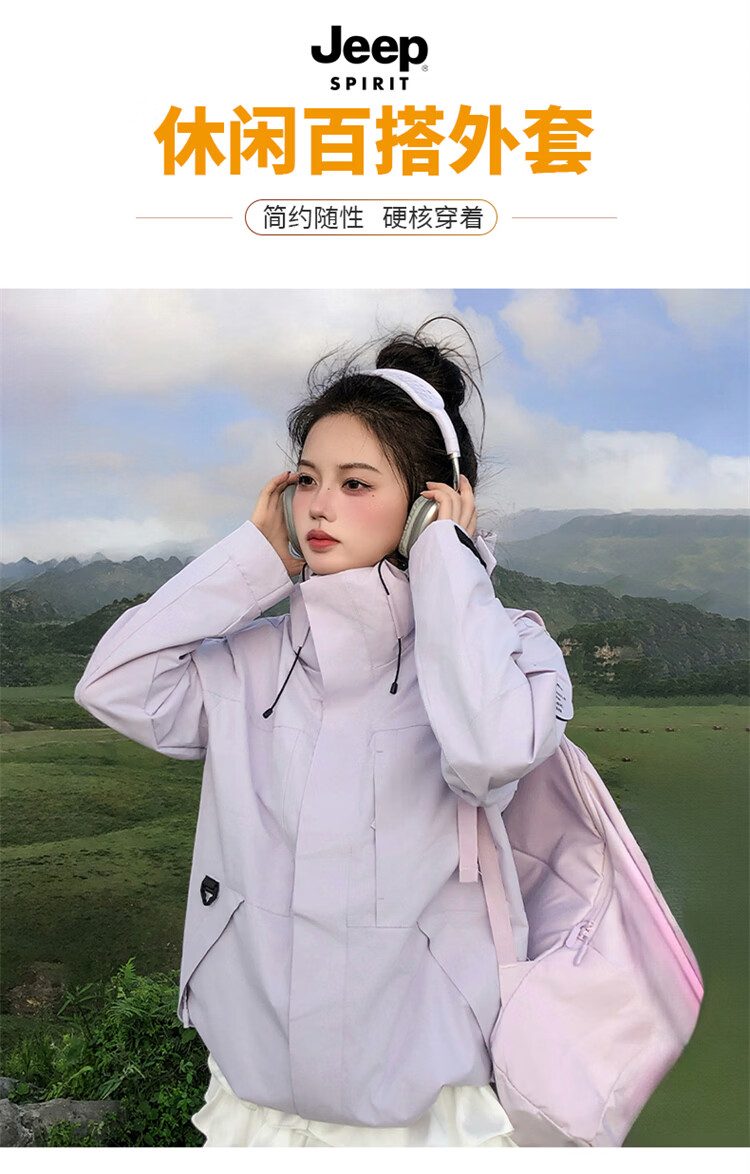 JEEP SPIRIT Jeep jacket for men and women, autumn and winter outdoor windproof three-in-one two-piece jacket for men, White Vine Purple XL