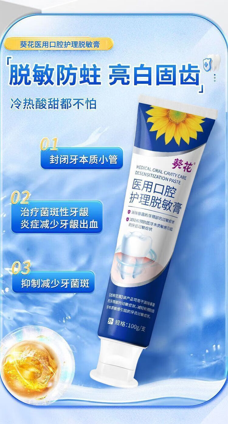 Sunflower desensitizing toothpaste medical fluoride repair gum bleeding special loose teeth solid anti-allergic toothpaste 100*3