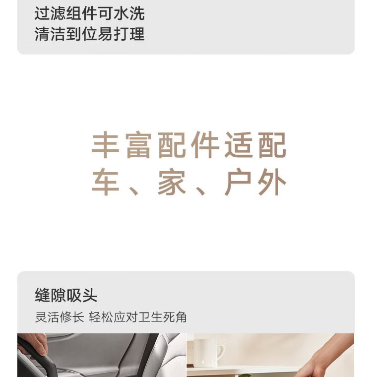 Mijia Xiaomi Wireless Car Vacuum Cleaner has high suction power and long battery life. It is lightweight and portable. It is suitable for car-mounted outdoor household cleaning in many scenarios.