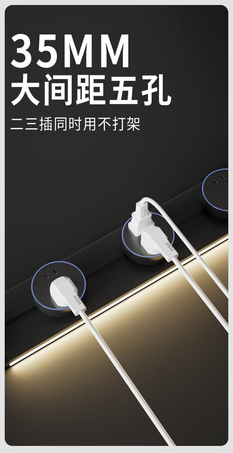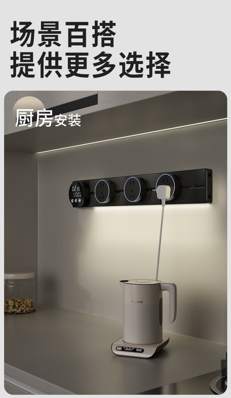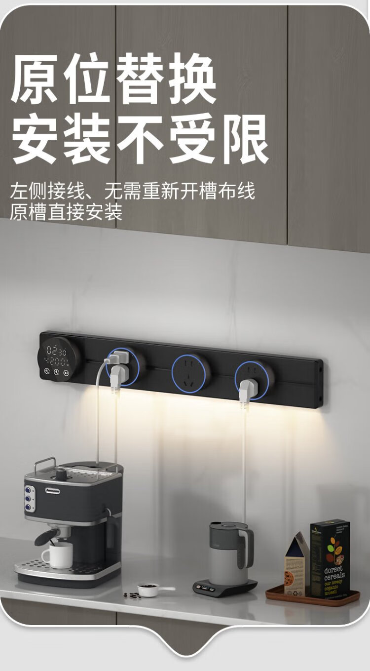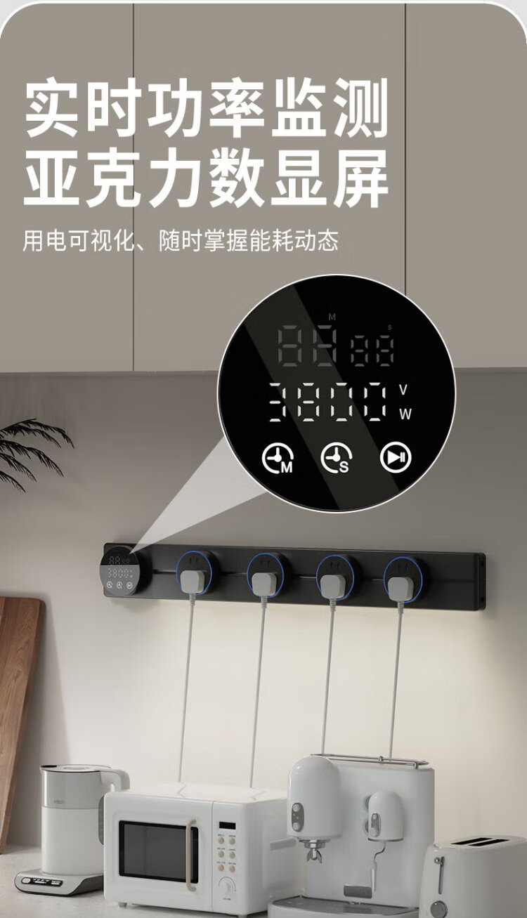 Intelligent digital display master control track socket wall-mounted removable wall socket power track kitchen sideboard intelligent master control digital display-80 track + 5 large five holes 220v