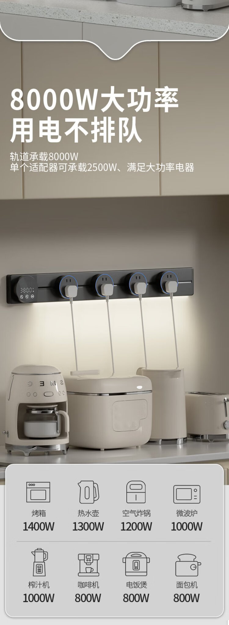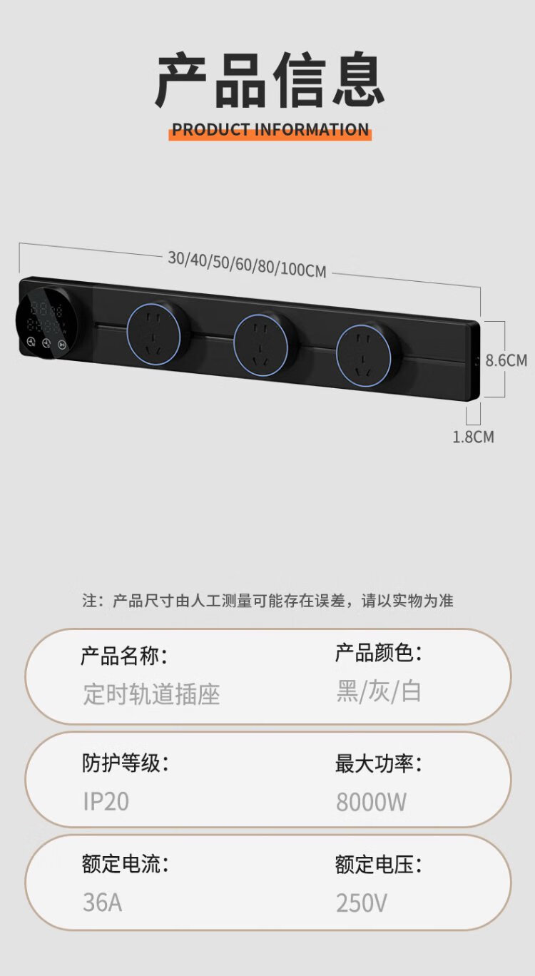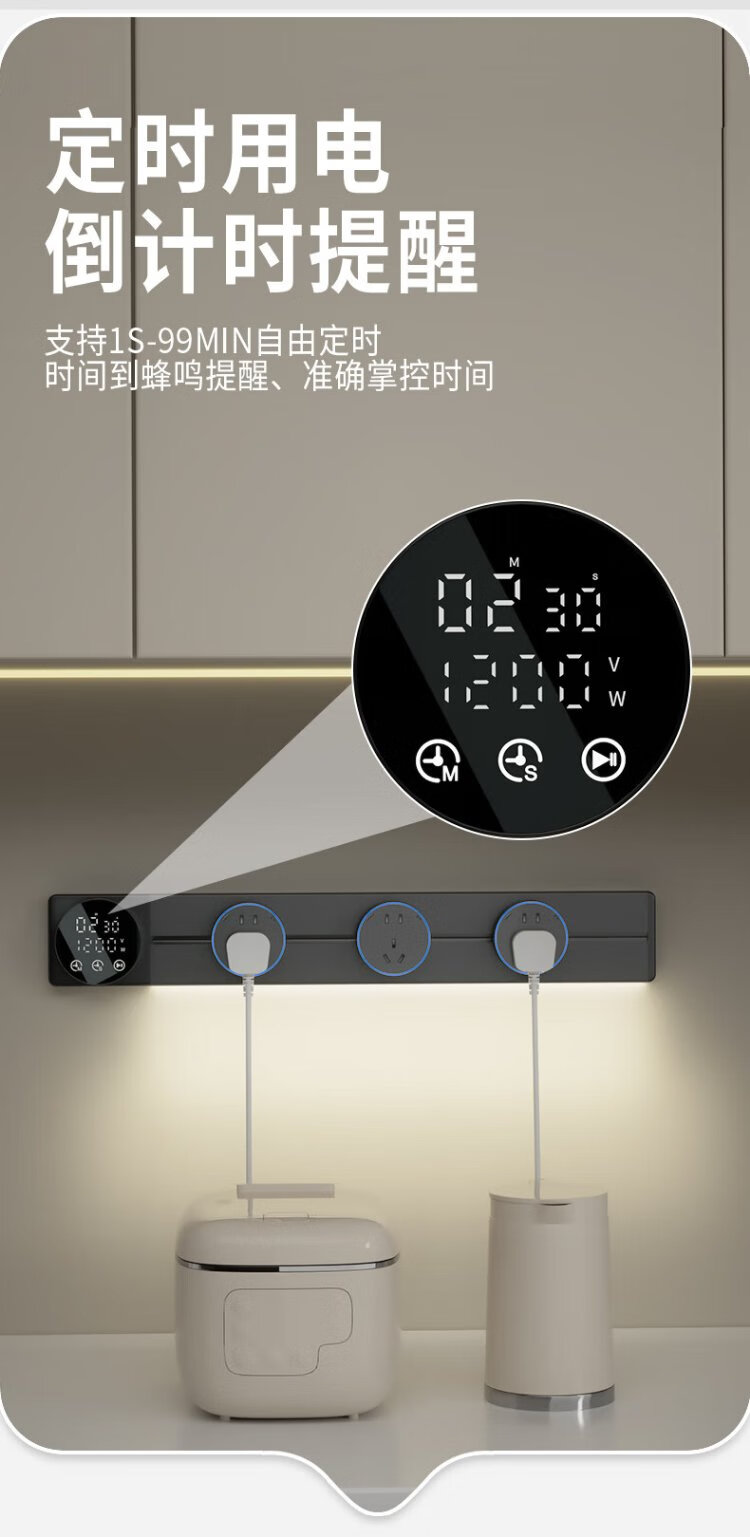 Intelligent digital display master control track socket wall-mounted removable wall socket power track kitchen sideboard intelligent master control digital display-80 track + 5 large five holes 220v