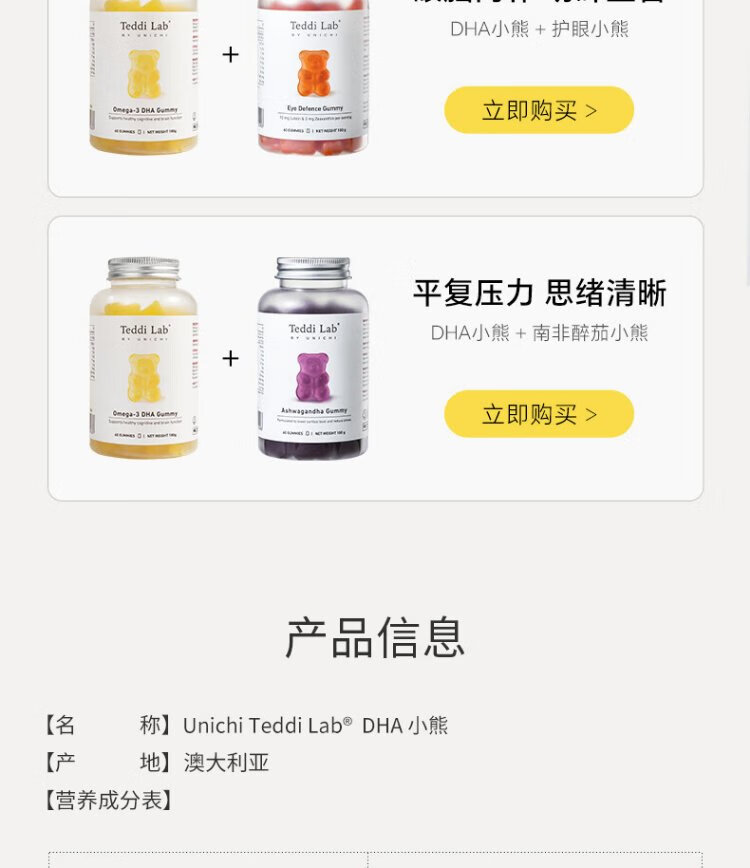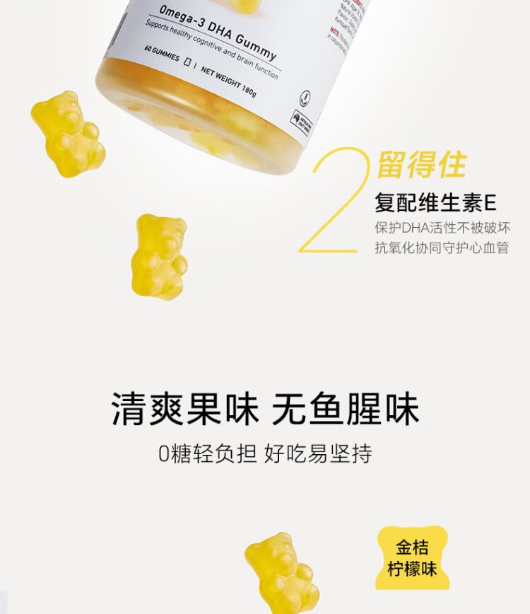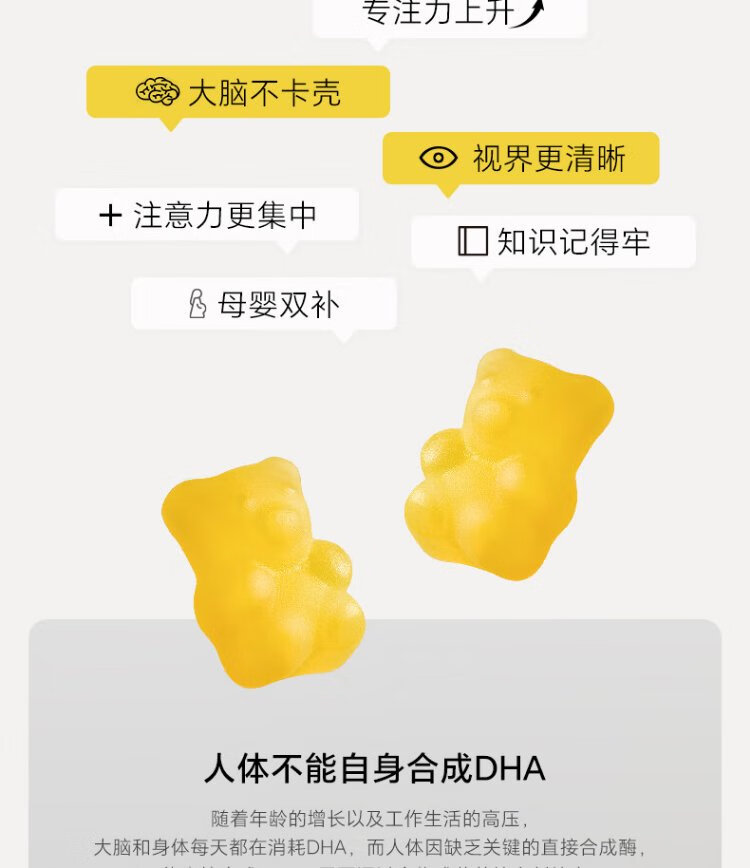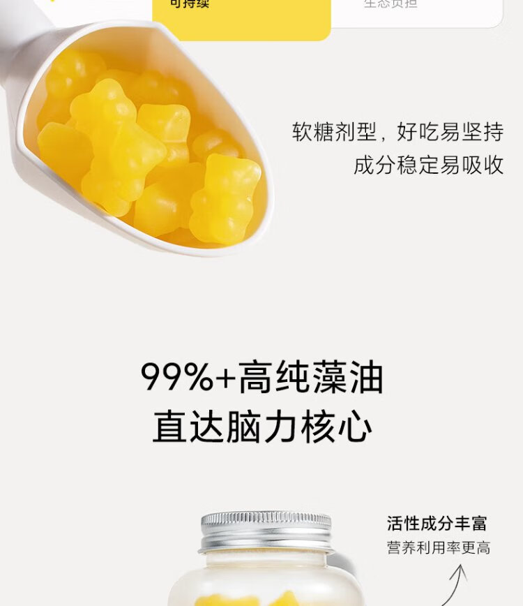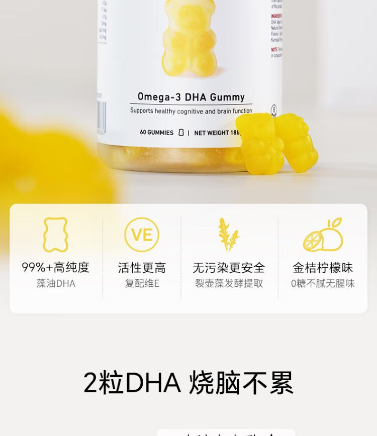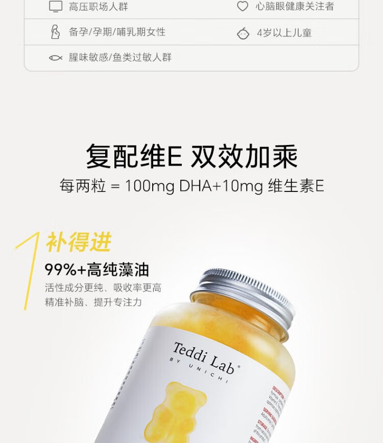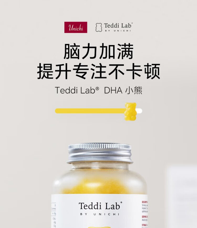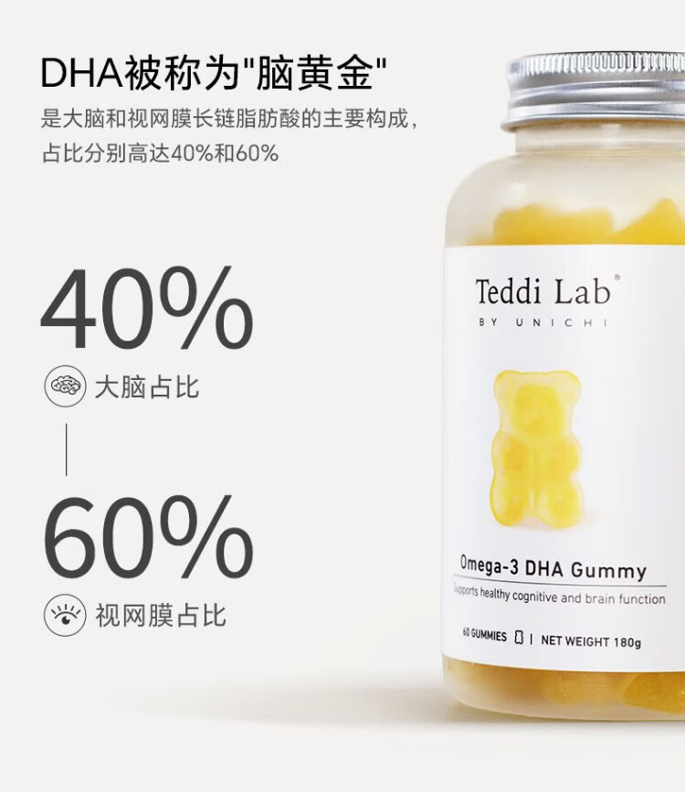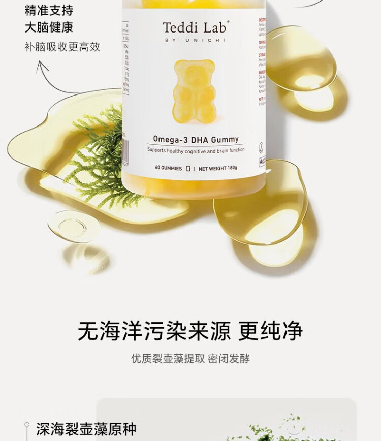 Unichi algae oil DHA gummy bears high purity omega-3 brain supplement for pregnant women and children 60 capsules Teddilab