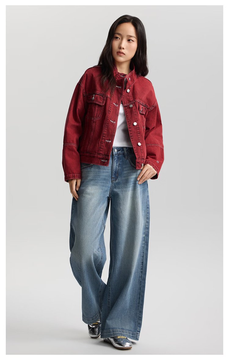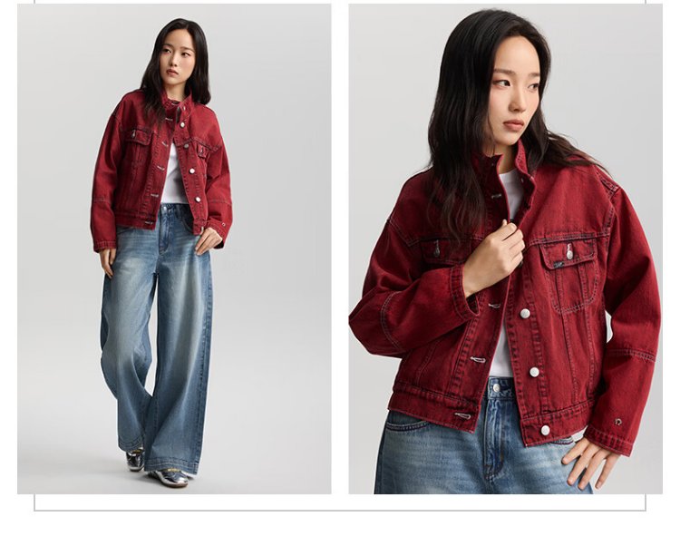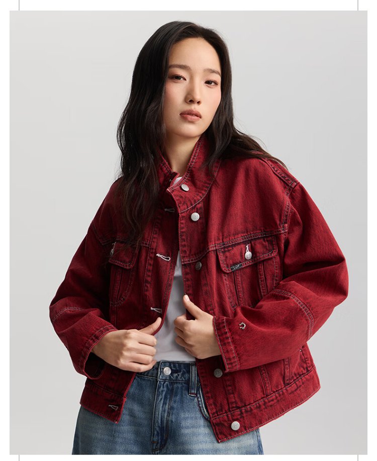 Lee shopping mall style 26 loose version horseshoe rivet design Year of the Horse New Year limited stand collar knight jacket for women