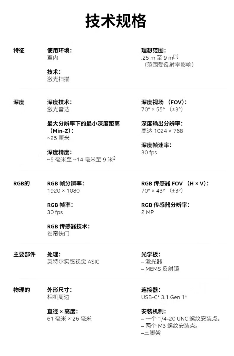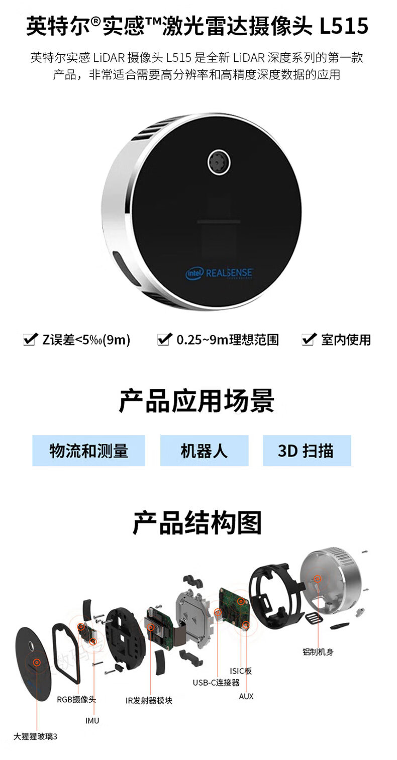 Intel Intel RealSense L515 Lidar Camera 3D Scanning Modeling Face Recognition L515 Boxed