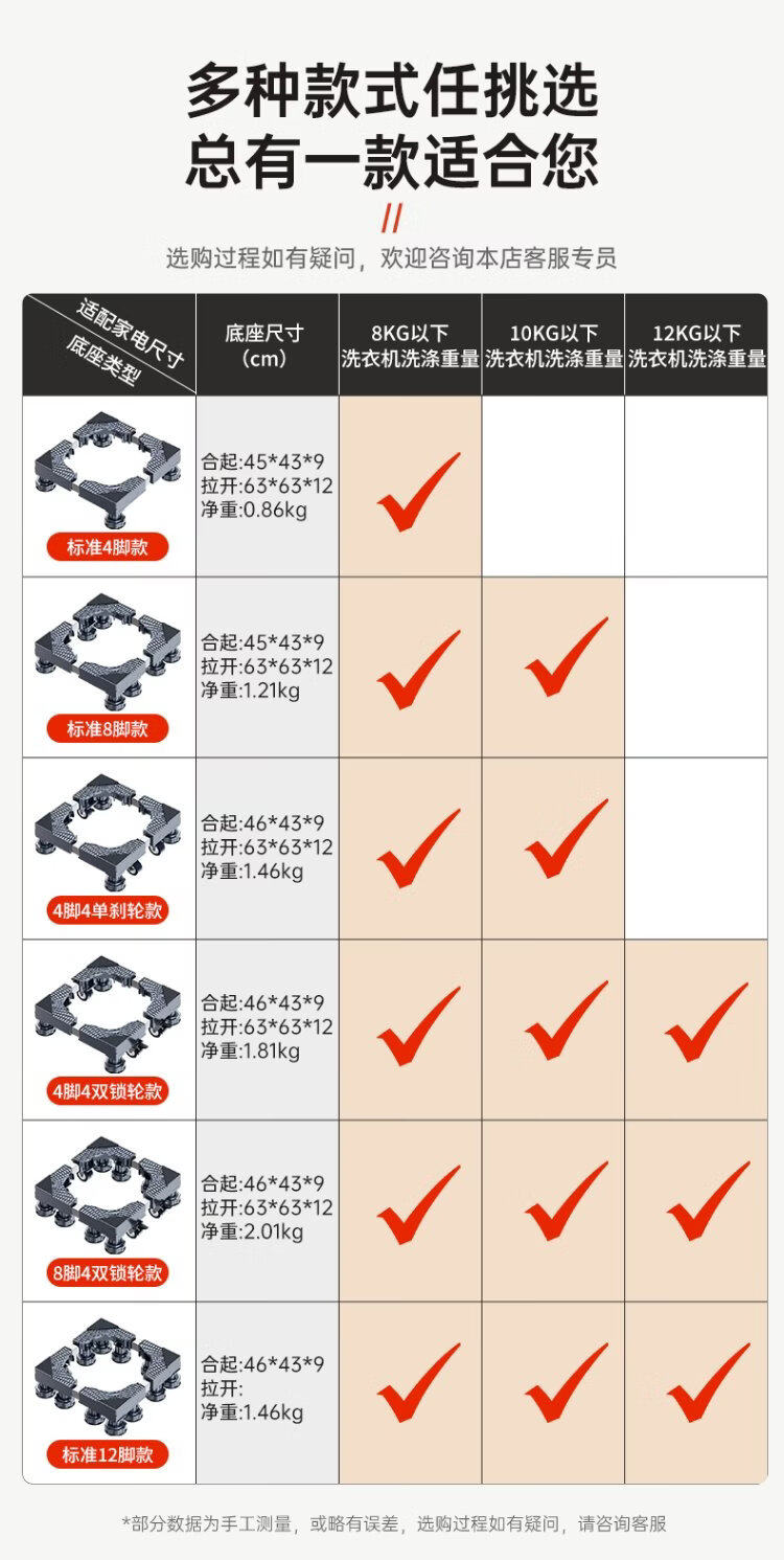 Dongpuli washing machine base removable bracket foot pad heightening non-slip anti-shock fixed refrigerator drum pulsator suitable for Little Swan Siemens Panasonic Haiermei universal