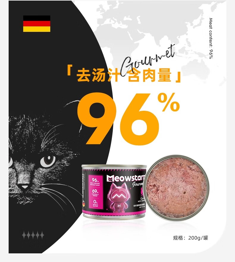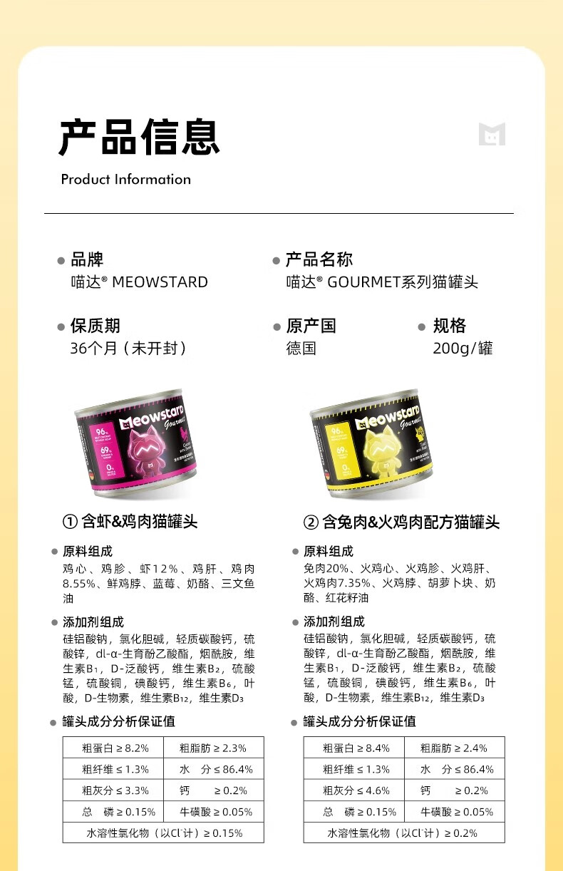 Meowda imported from Germany canned cat staple food, grain-free, hypoallergenic, fresh meat, wet food for young cats, pheasant chicken & chicken 200g*6
