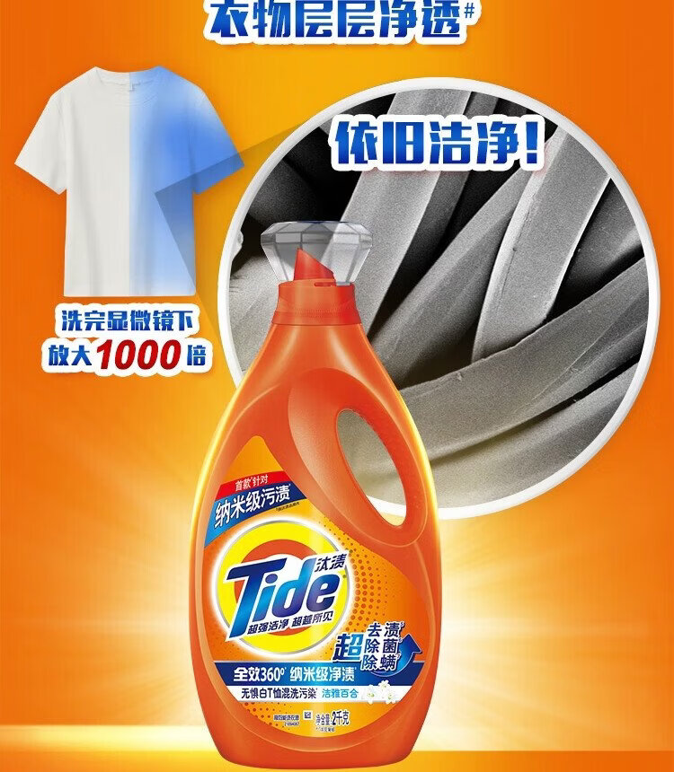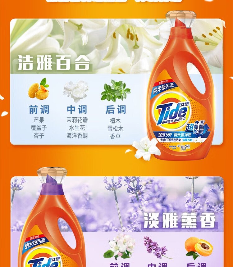 Tide Stain Remover Laundry Detergent Elegant Fragrance 10kg (2.5kg*2 bottles) family size, no fear of mixed washing, supports quick washing