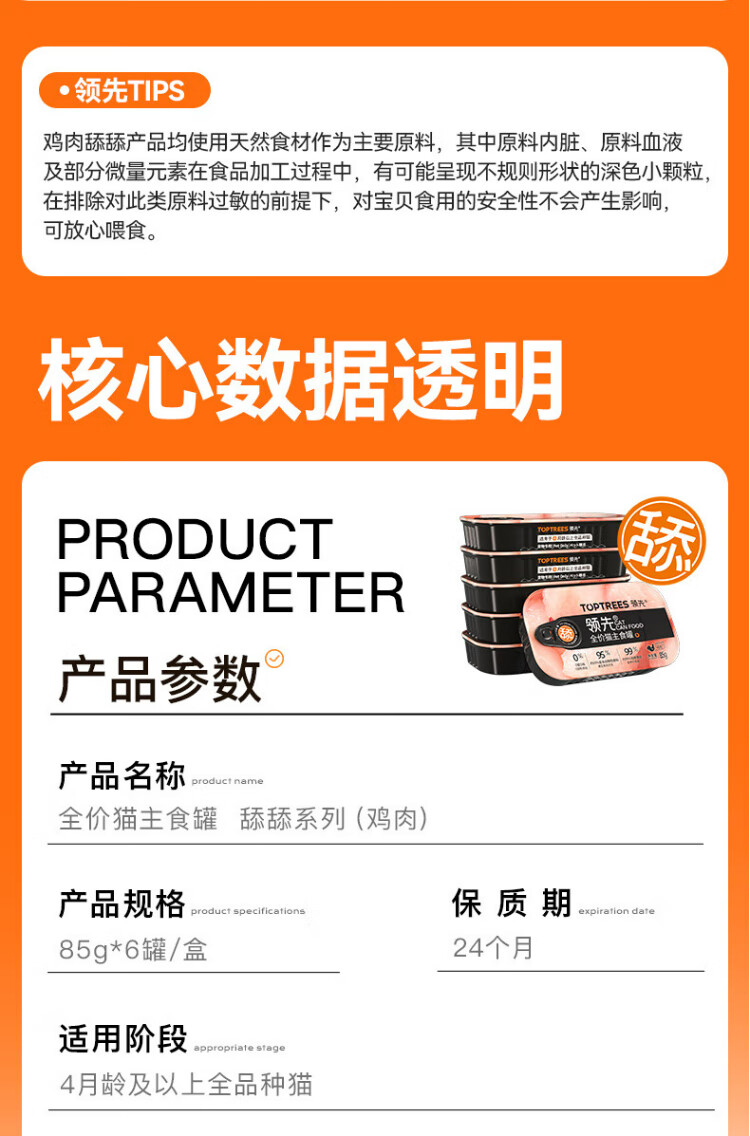 Leading staple cat food canned cat snacks wet food grain-free and glue-free ice cream licking texture chicken flavor 85g*24 cans