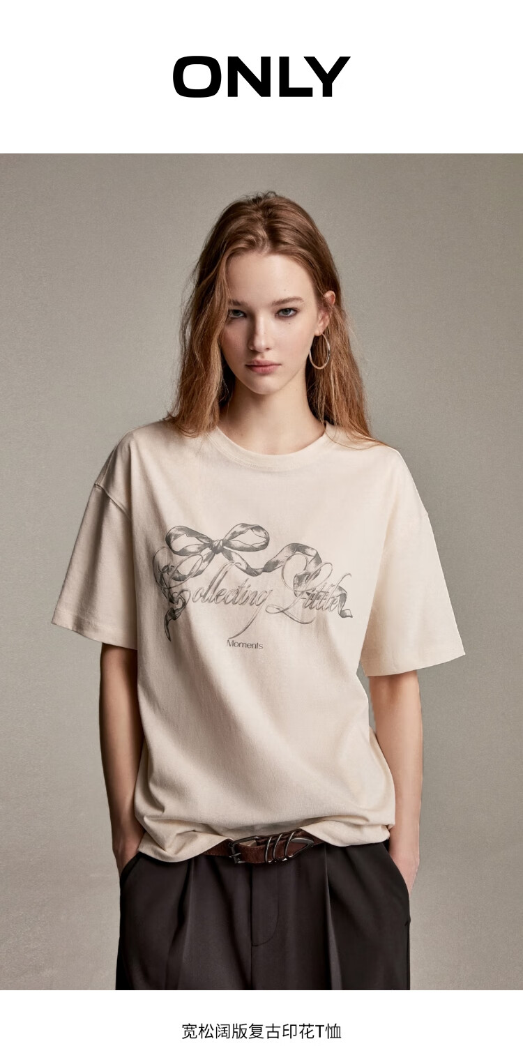 ONLY 2026 Spring Lazy Retro Print Loose Wide T-shirt for Women|126101075