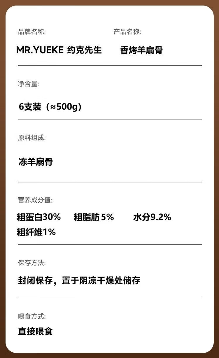 Mr. York Pet Snacks Dog Bones Teeth Cleaning Sticks for Puppies Corgi Teddy Fragrant Roasted Lamb Fan Bones 6 pieces 500g
