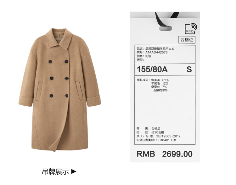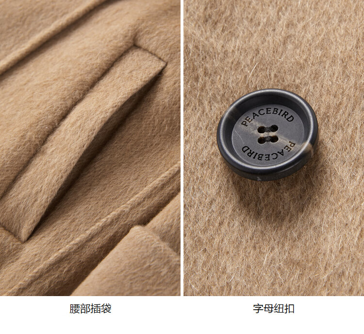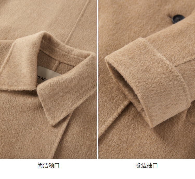 PEACEBIRD Women's Woolen Coat Winter Double-Breasted Double-Sided Woolen Coat Women's Jacket Texture Camel M