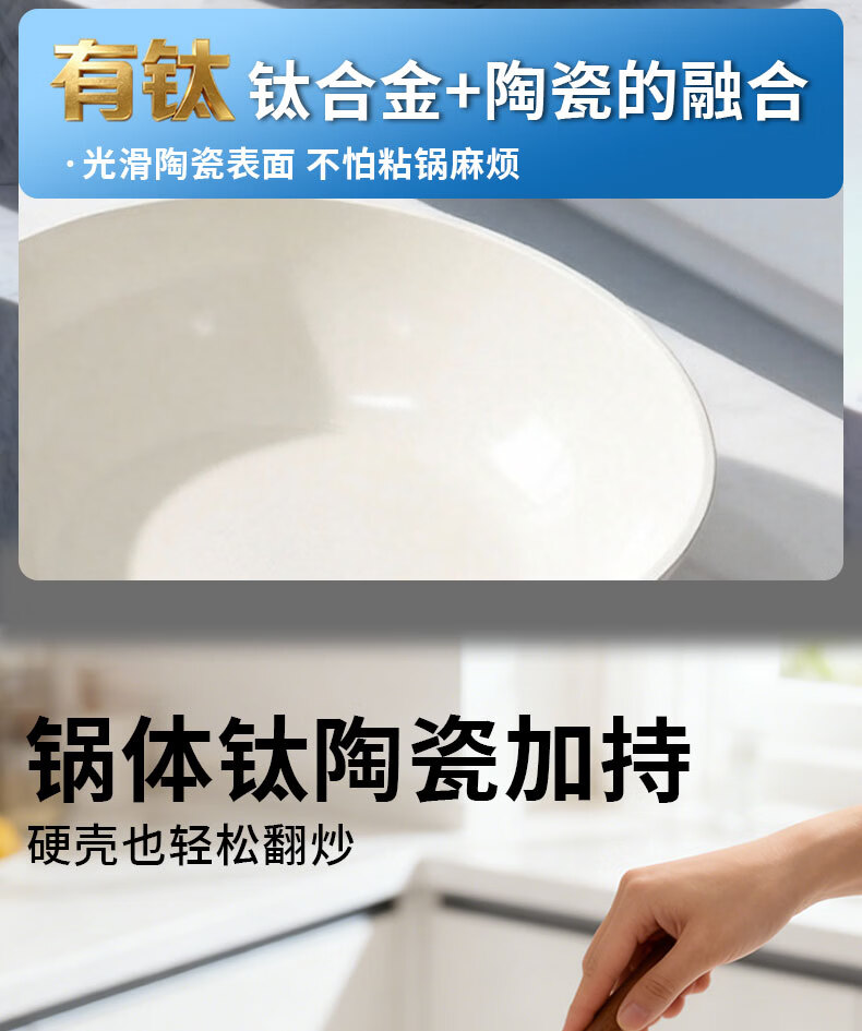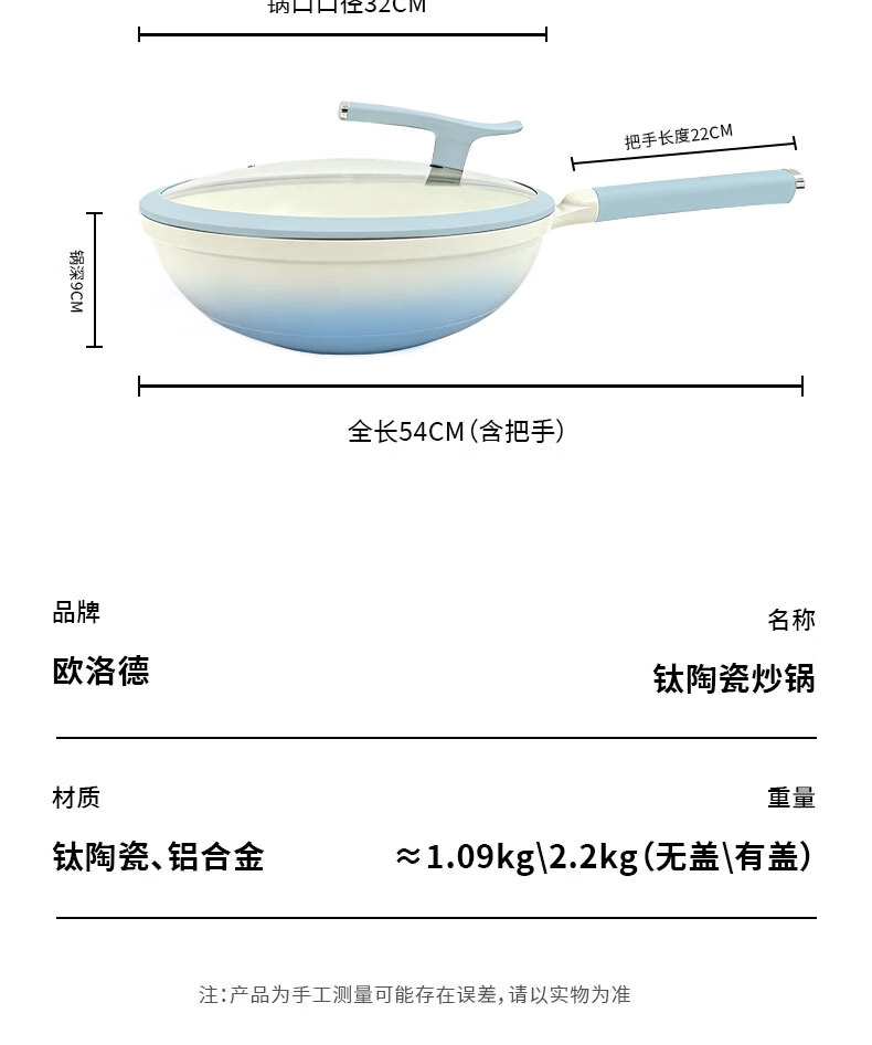 Orode ceramic 0 fluorine coating non-stick wok healthy fluorine-free coating containing titanium for frying and cooking non-stick pan 32CM